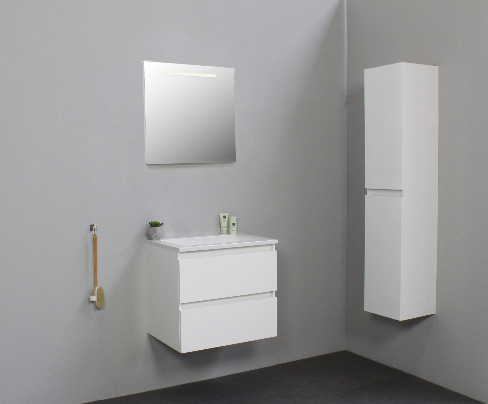Solidline badkamermeubelset | 60cm | Keramiek | Wit | 2 | Hoogglans wit | Spiegel met LED verlichting | Bouwpakket