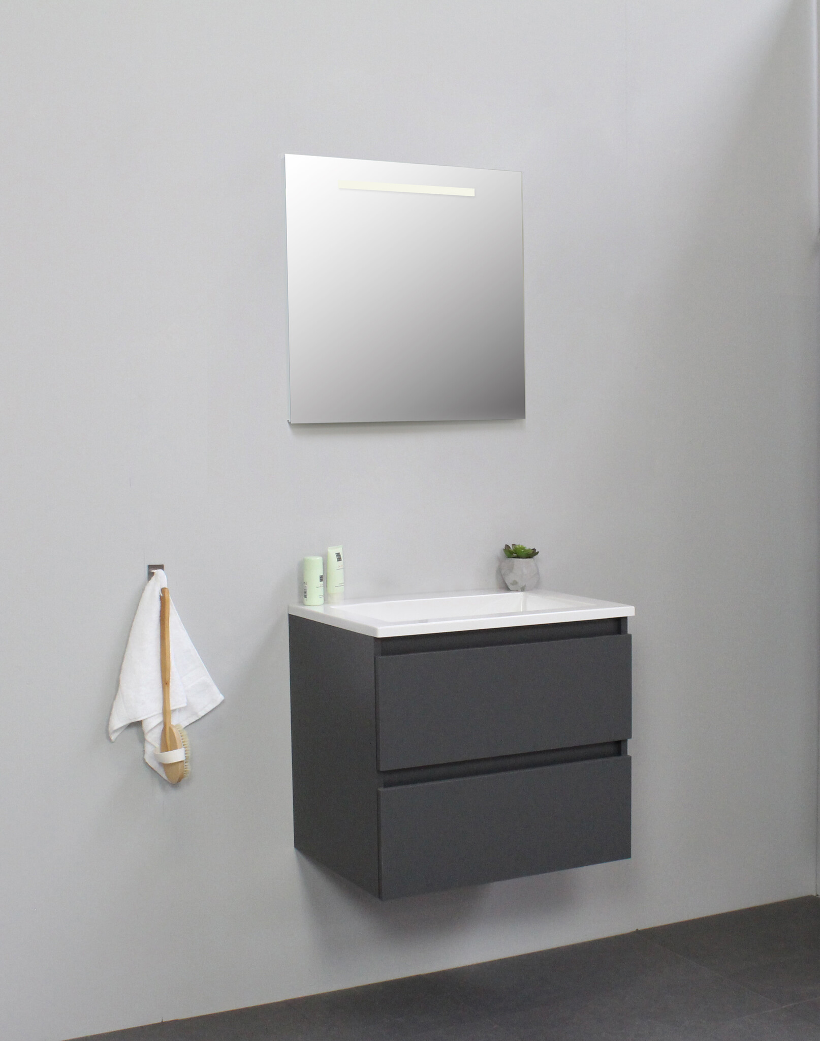 Offerte aanvraag voor Solidline badkamermeubelset | 60cm | Keramiek | Wit | 2 | Mat antraciet | Spiegel met LED verlichting | Geassembleerd