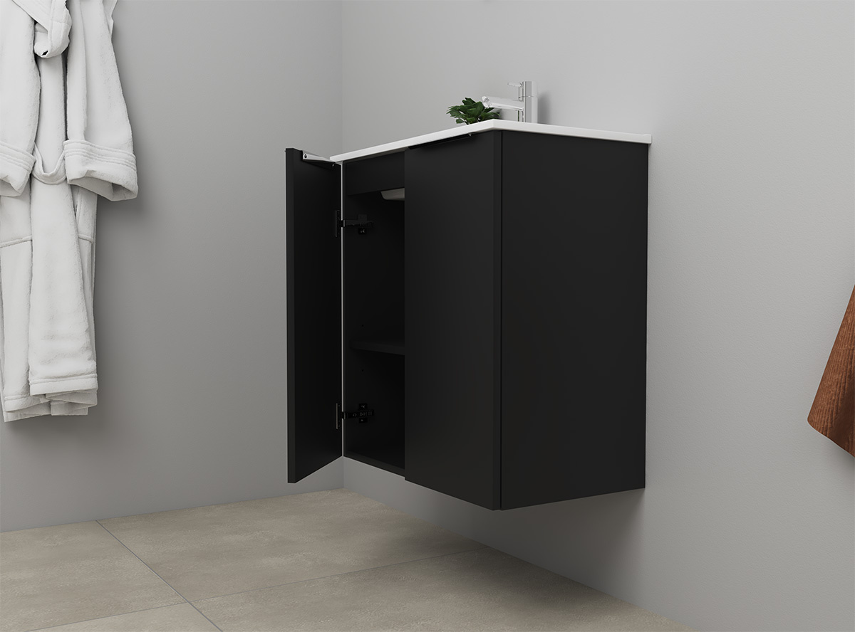 Badkamermeubelset 60cm – Mat zwart met spiegelkast