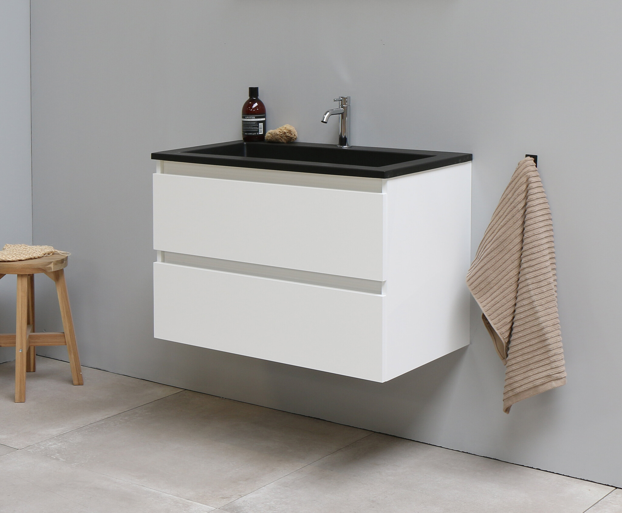 Solidline badkamermeubelset | 80cm | Acryl | Mat zwart | 1 | Hoogglans wit | Zonder spiegel | Bouwpakket
