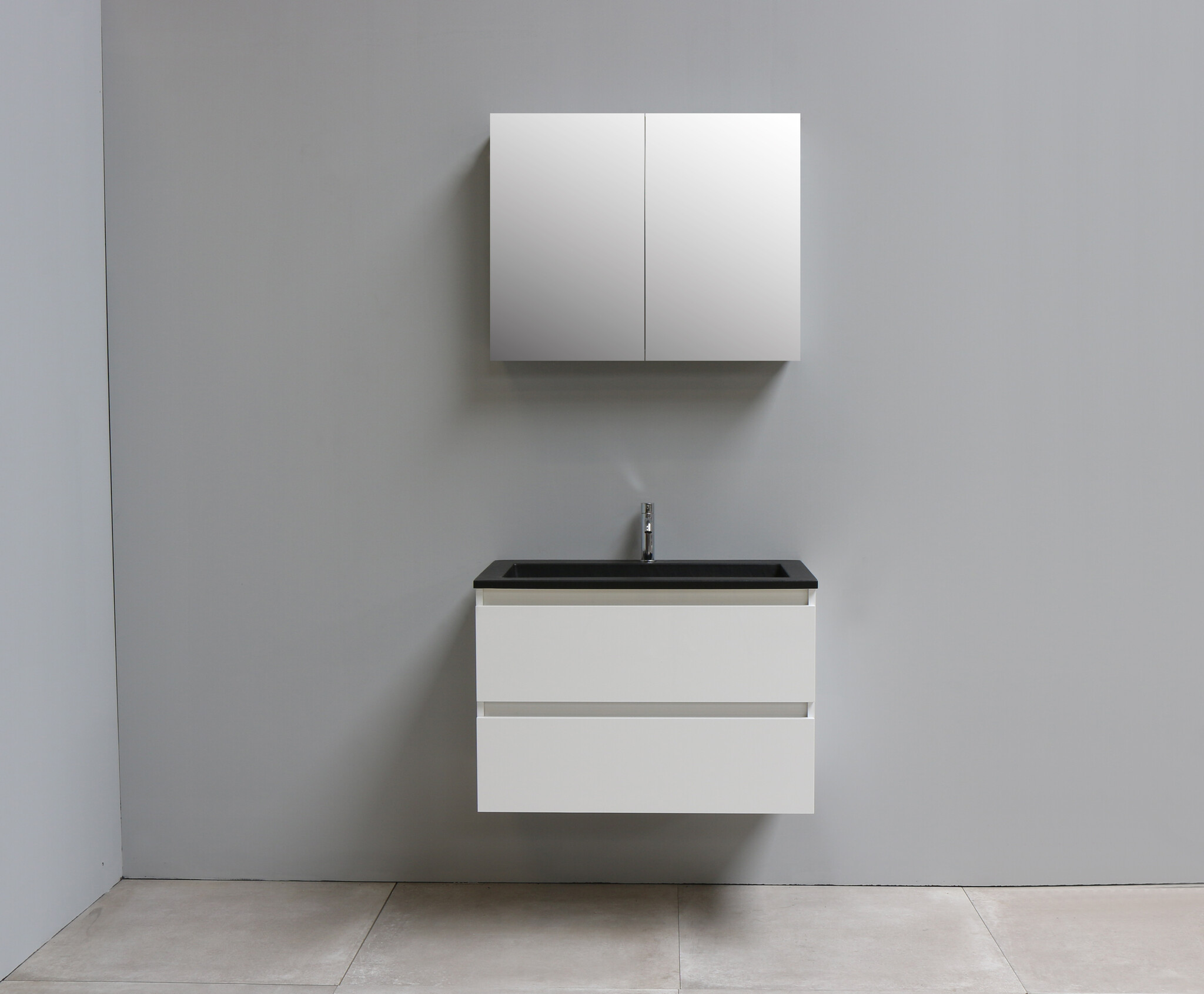 Solidline badkamermeubelset | 80cm | Acryl | Mat zwart | 1 | Hoogglans wit | Met spiegelkast | Bouwpakket