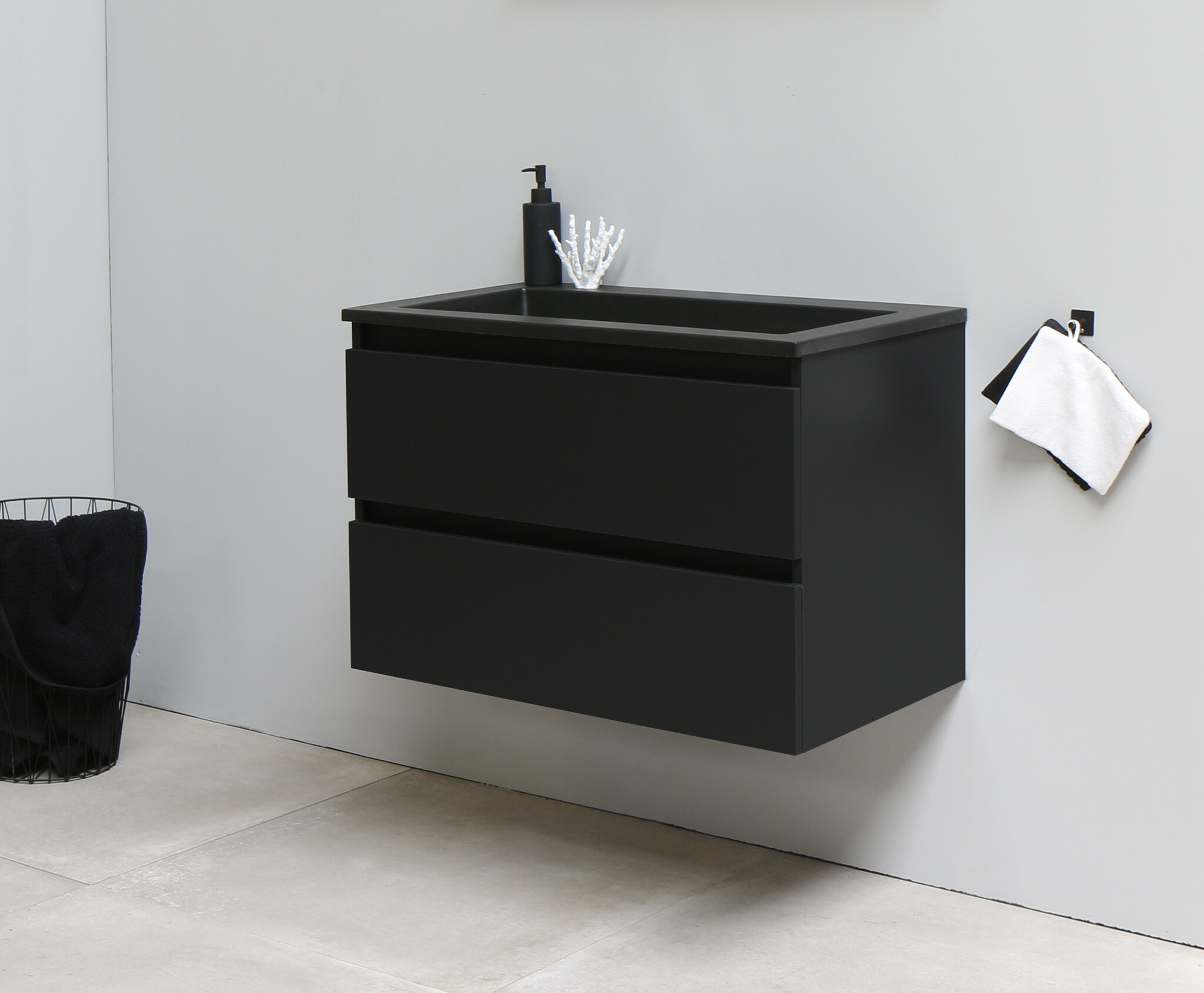 Solidline badkamermeubelset | 80cm | Acryl | Mat zwart | 0 | Mat zwart | Zonder spiegel | Bouwpakket