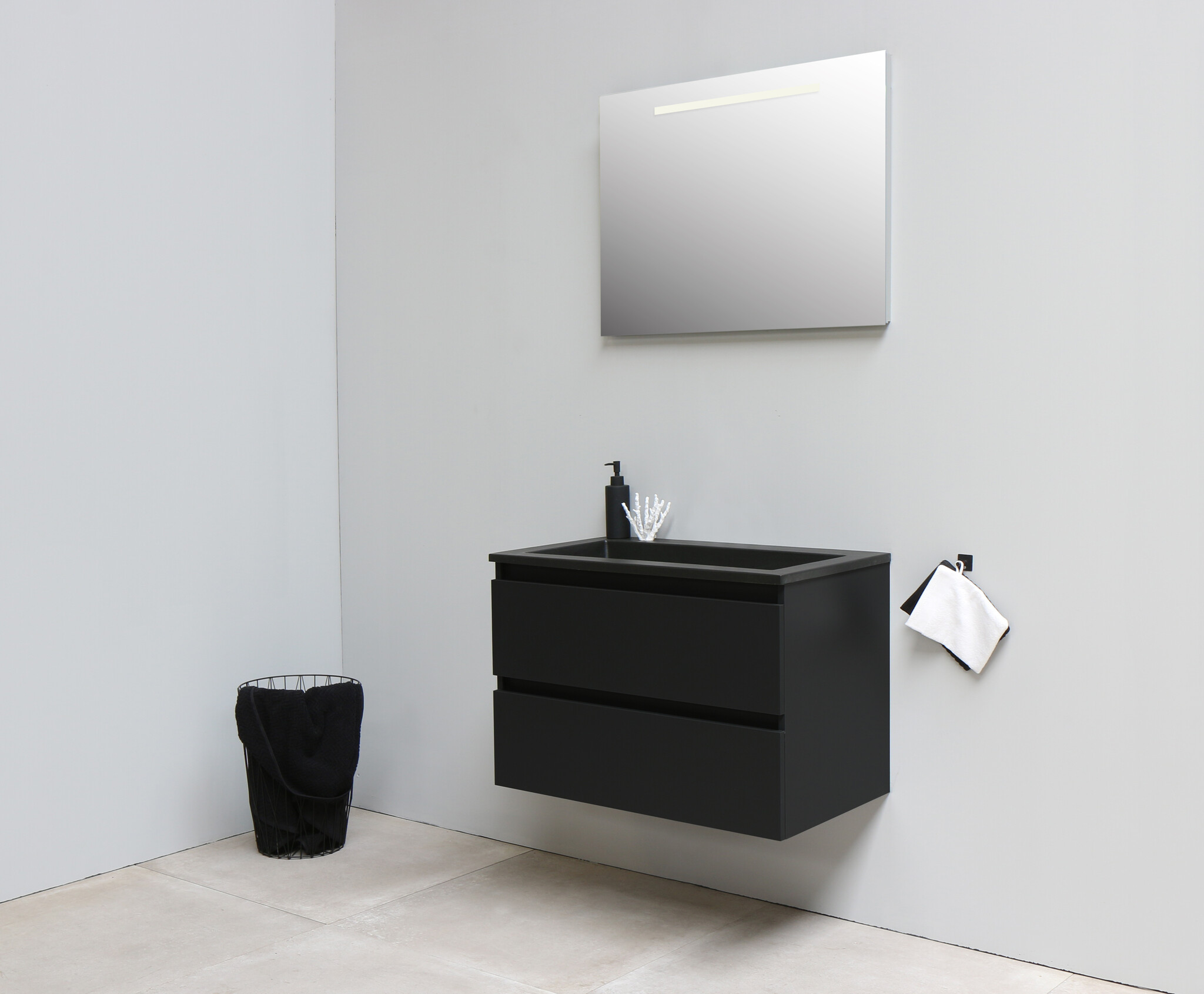 Solidline badkamermeubelset | 80cm | Acryl | Mat zwart | 0 | Mat zwart | Spiegel met LED verlichting | Bouwpakket