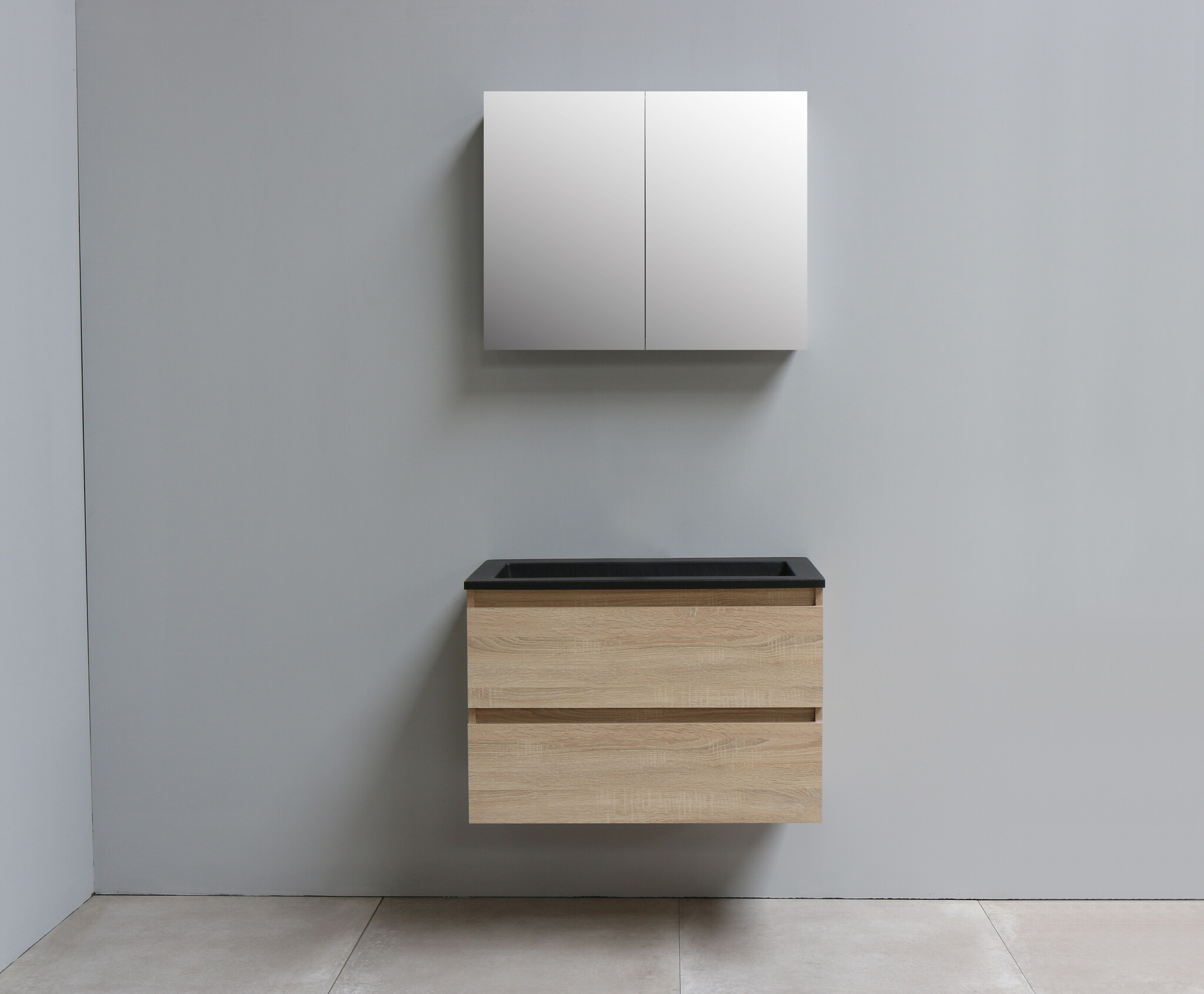 Solidline badkamermeubelset | 80cm | Acryl | Mat zwart | 0 | Eiken | Met spiegelkast | Geassembleerd