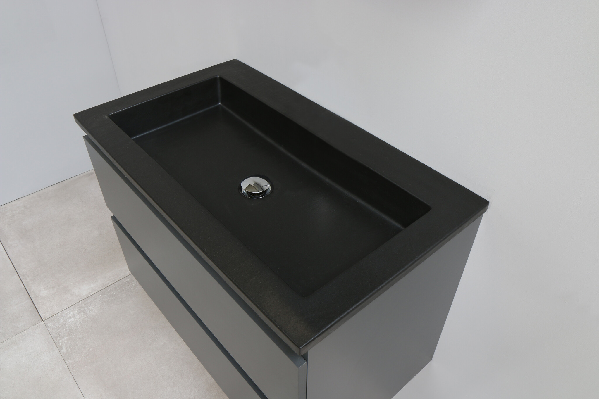 Solidline badkamermeubelset | 80cm | Acryl | Mat zwart | 0 | Mat antraciet | Zonder spiegel | Geassembleerd
