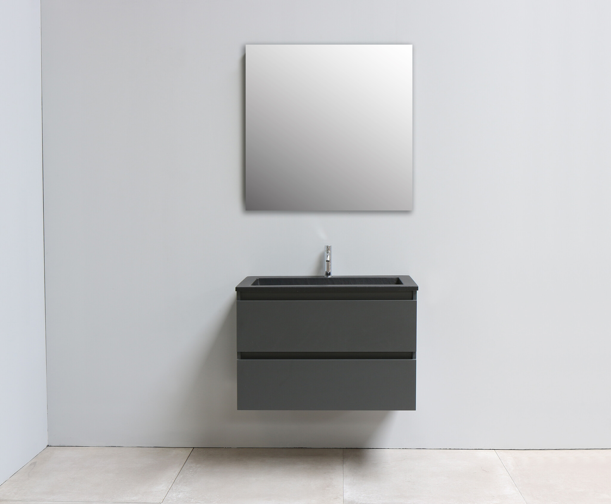 Solidline badkamermeubelset | 80cm | Acryl | Mat zwart | 1 | Mat antraciet | Standaard spiegel | Geassembleerd