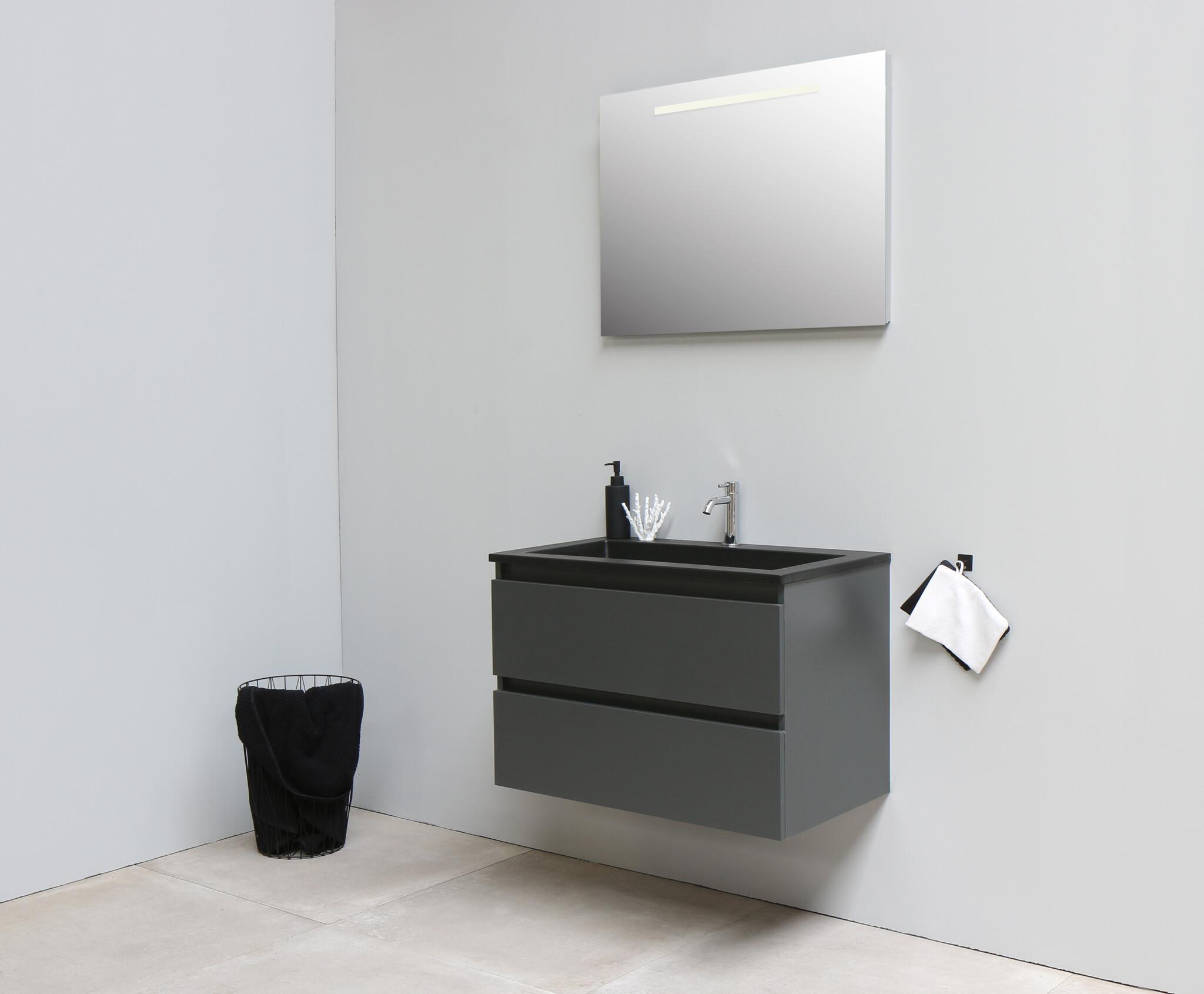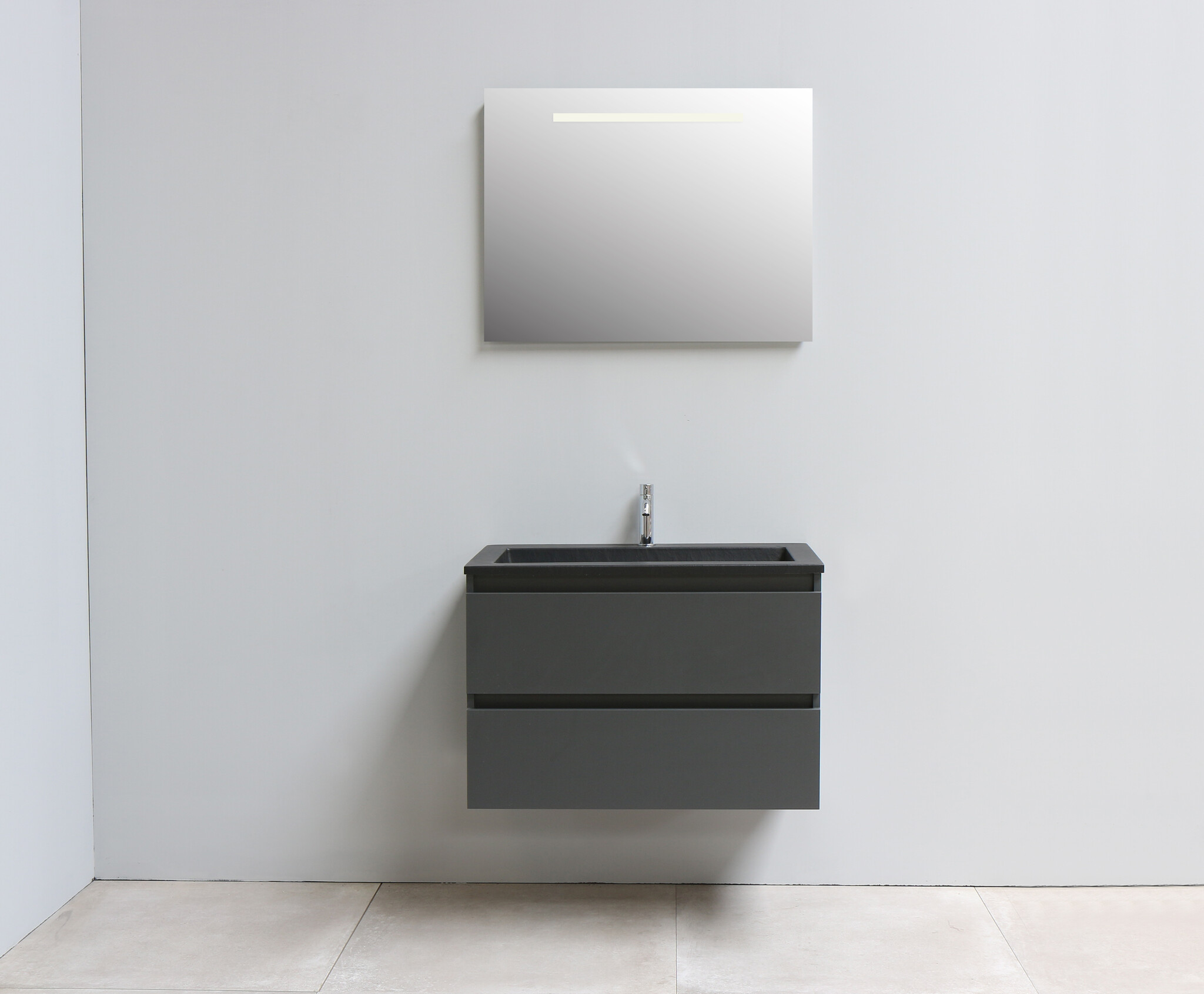 Solidline badkamermeubelset | 80cm | Acryl | Mat zwart | 1 | Mat antraciet | Spiegel met LED verlichting | Geassembleerd
