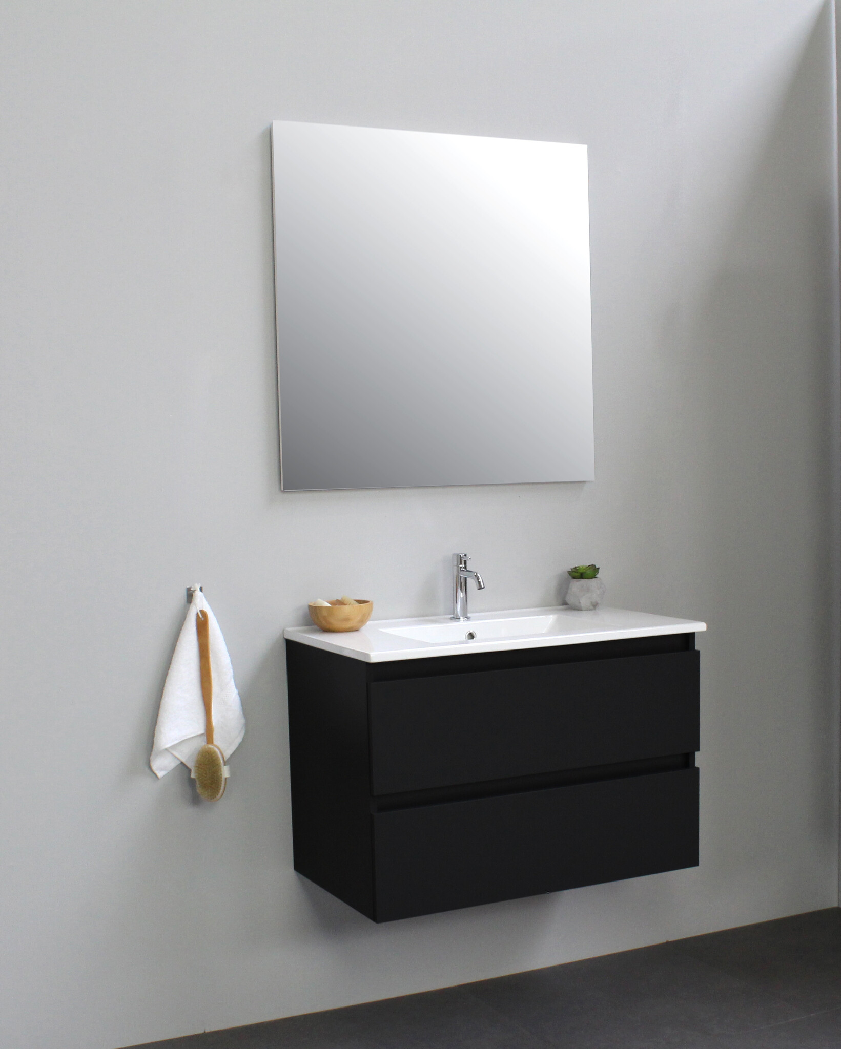 Solidline badkamermeubelset | 80cm | Acryl | Mat zwart | 1 | Mat zwart | Standaard spiegel | Geassembleerd