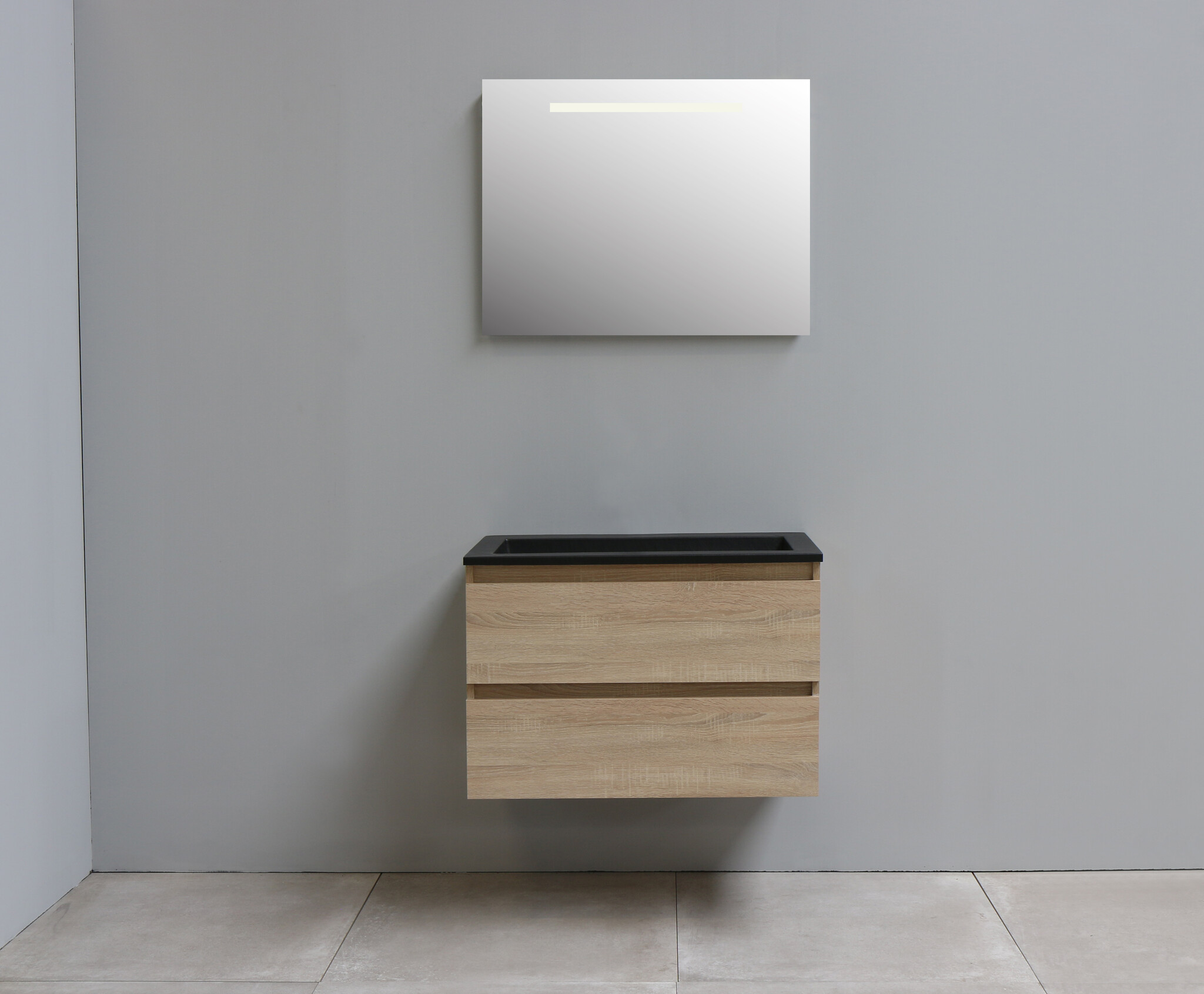 Solidline badkamermeubelset - 80cm - Acryl - Mat zwart - 2 - Eiken - Spiegel met LED verlichting - Geassembleerd