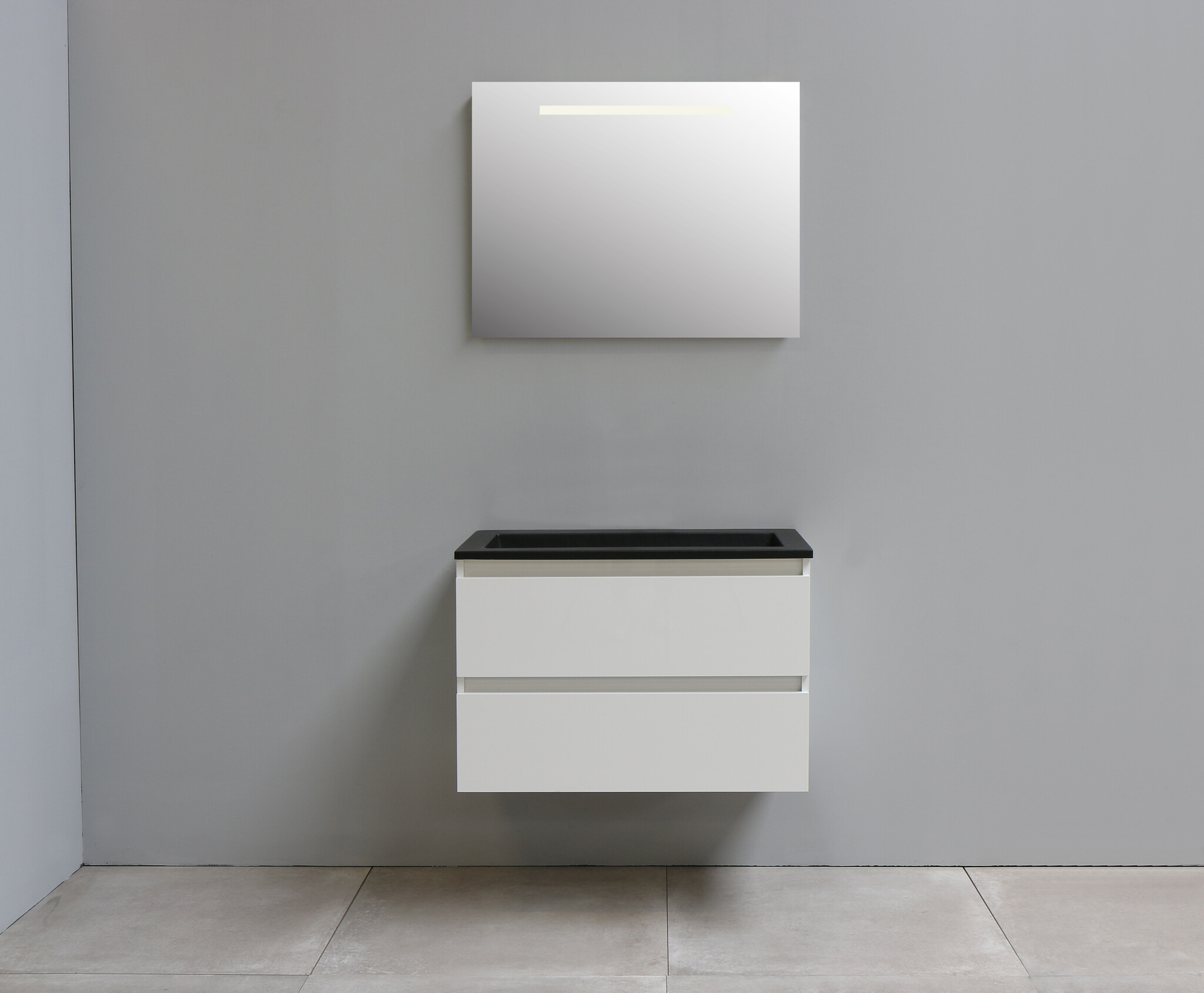 Solidline badkamermeubelset | 80cm | Acryl | Mat zwart | 2 | Hoogglans wit | Spiegel met LED verlichting | Bouwpakket