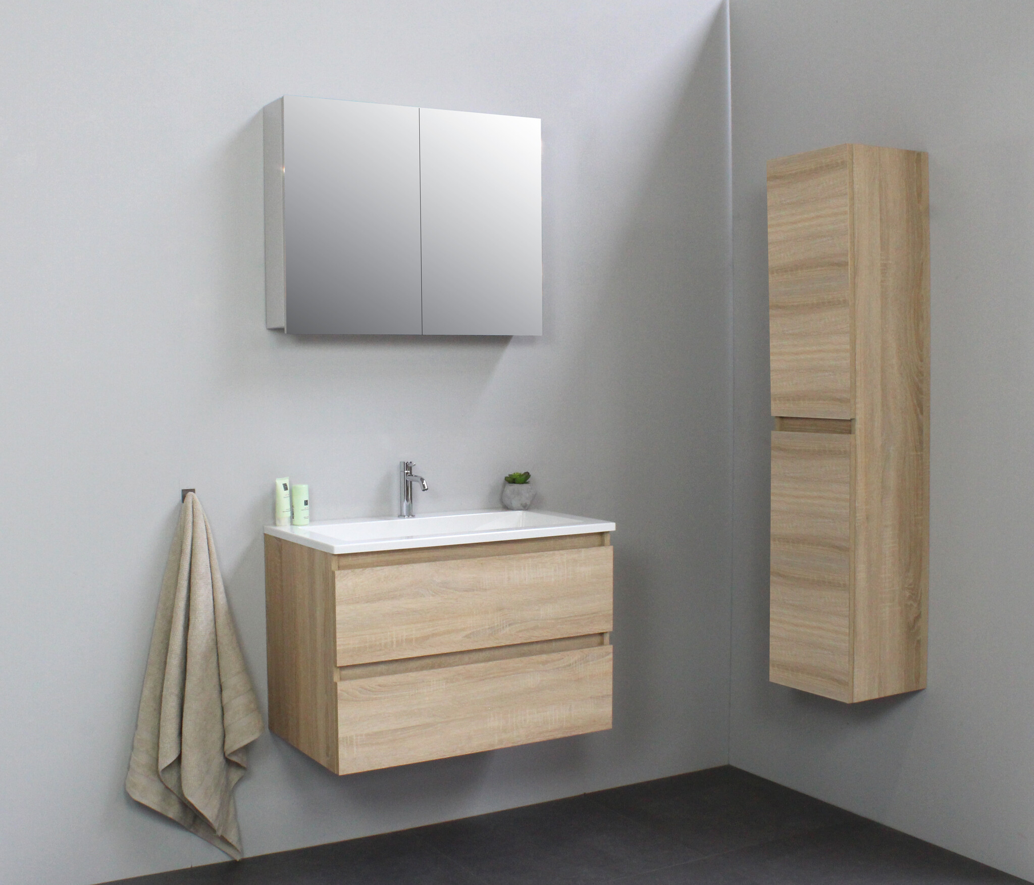Offerte aanvraag voor Solidline badkamermeubelset | 80cm | Acryl | Wit | 1 | Eiken | Met spiegelkast | Bouwpakket