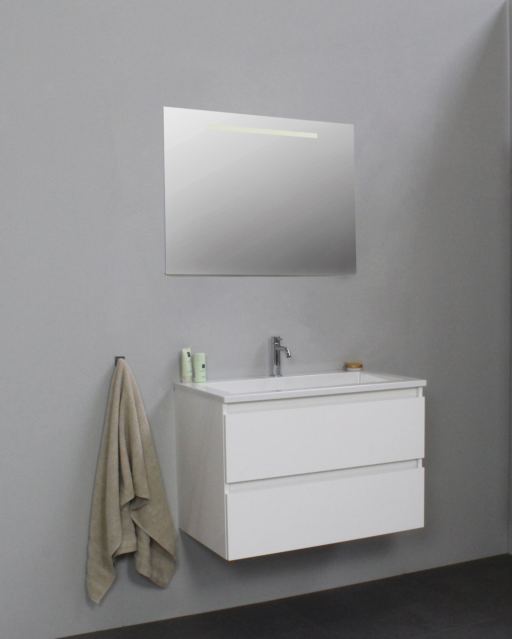 Solidline badkamermeubelset | 80cm | Acryl | Wit | 1 | Hoogglans wit | Spiegel met LED verlichting | Bouwpakket