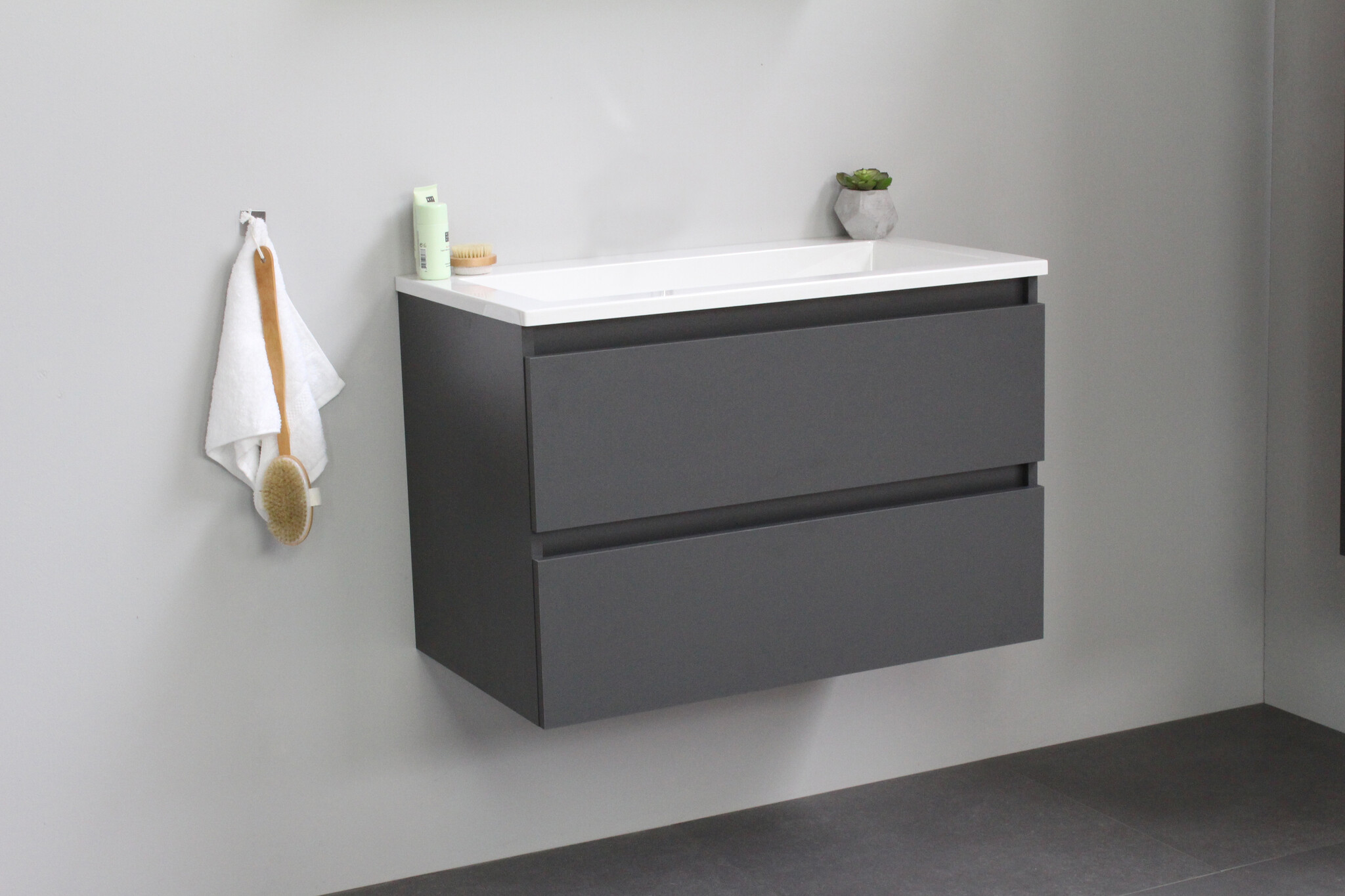 Solidline badkamermeubelset | 80cm | Acryl | Wit | 0 | Mat antraciet | Zonder spiegel | Bouwpakket