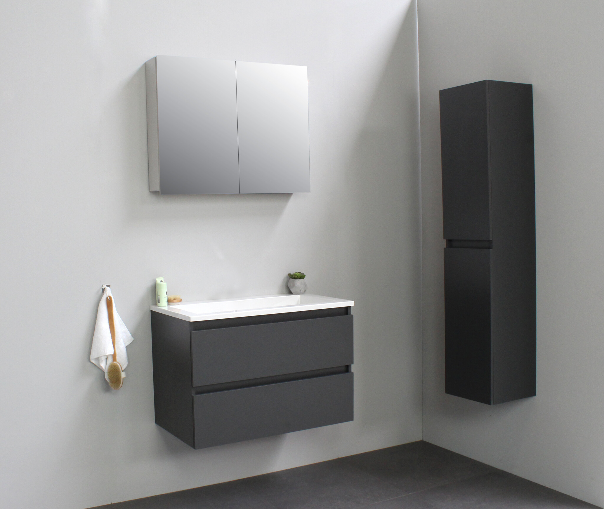 Solidline badkamermeubelset | 80cm | Acryl | Wit | 0 | Mat antraciet | Met spiegelkast | Bouwpakket