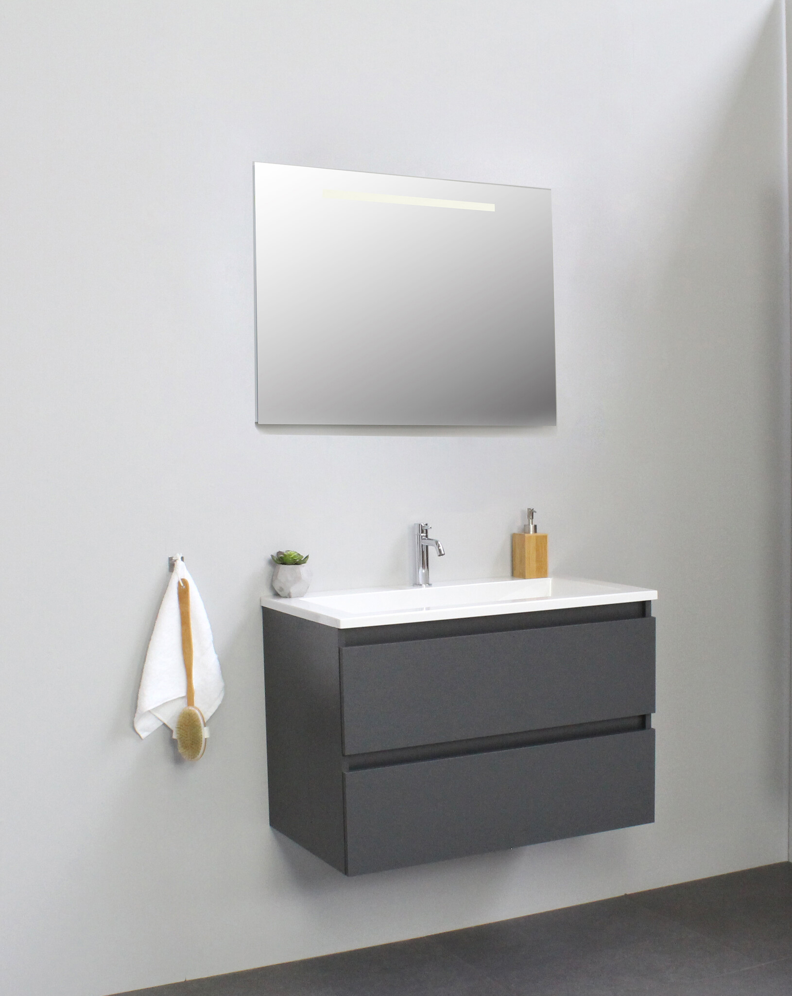 Solidline badkamermeubelset | 80cm | Acryl | Wit | 1 | Mat antraciet | Spiegel met LED verlichting | Bouwpakket