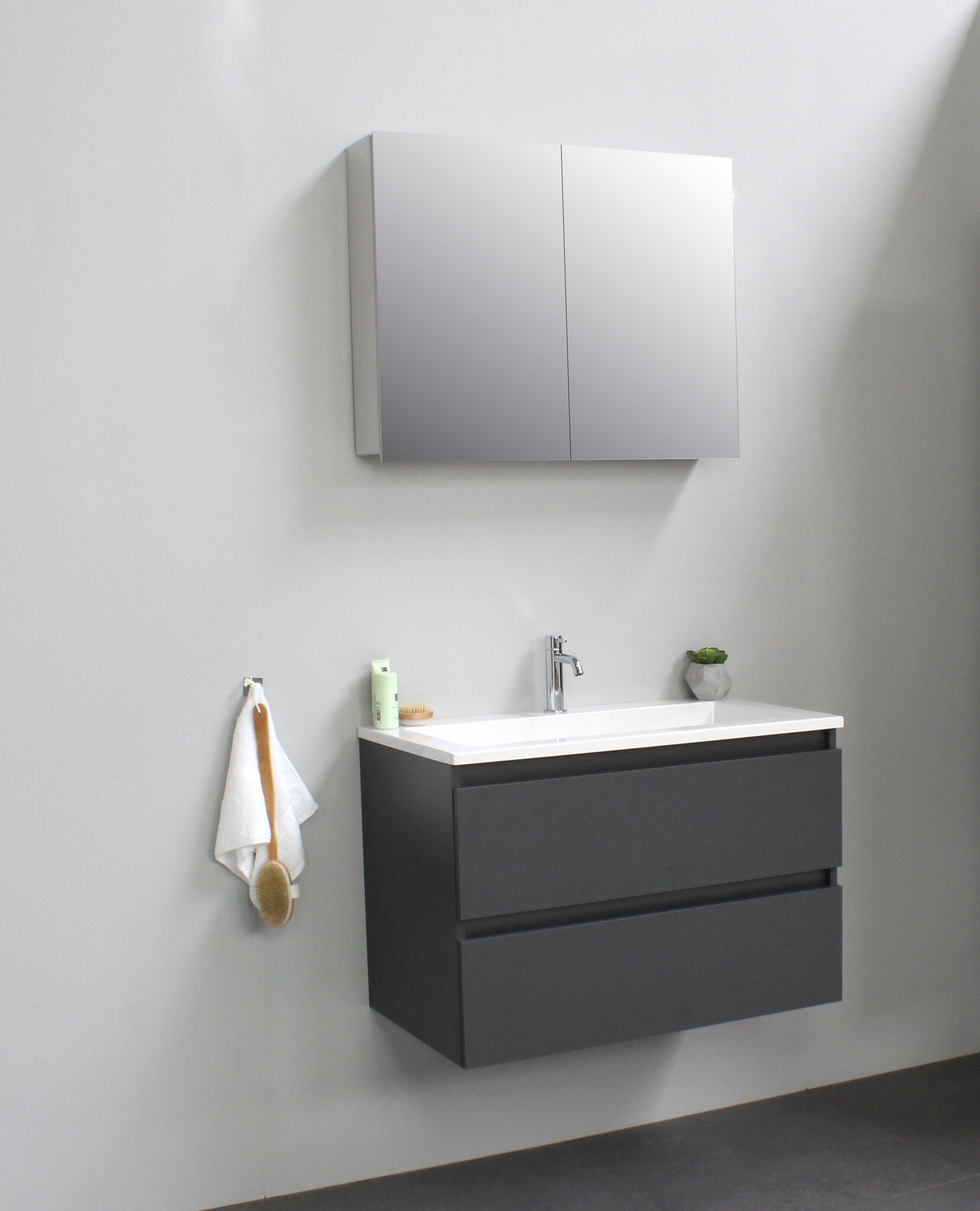 Solidline badkamermeubelset | 80cm | Acryl | Wit | 1 | Mat antraciet | Met spiegelkast | Bouwpakket