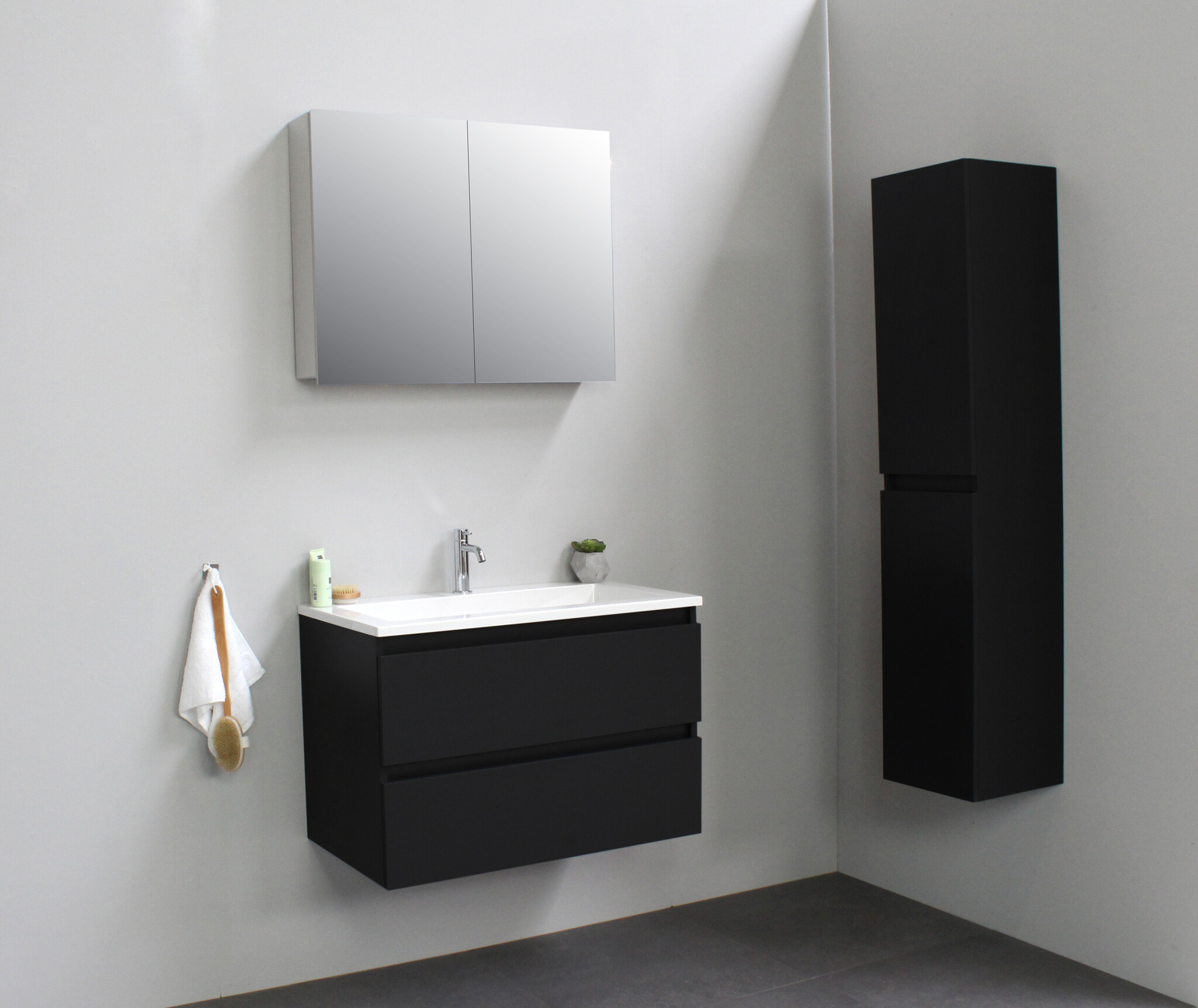 Solidline badkamermeubelset | 80cm | Acryl | Wit | 1 | Mat zwart | Met spiegelkast | Bouwpakket