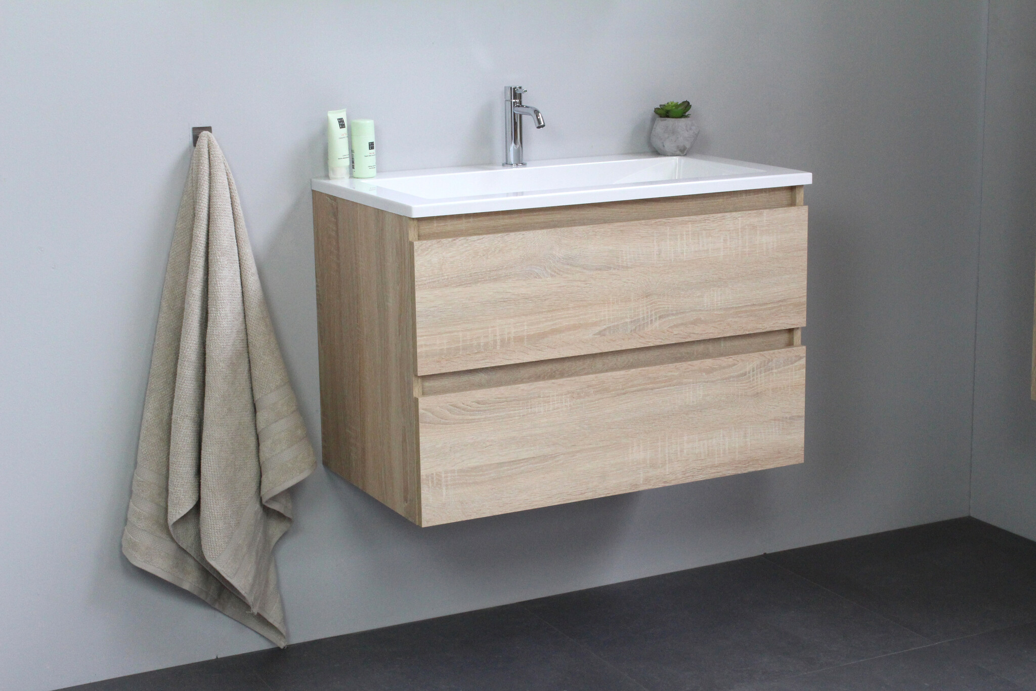 Offerte aanvraag voor Solidline badkamermeubelset | 80cm | Acryl | Wit | 1 | Eiken | Zonder spiegel | Geassembleerd