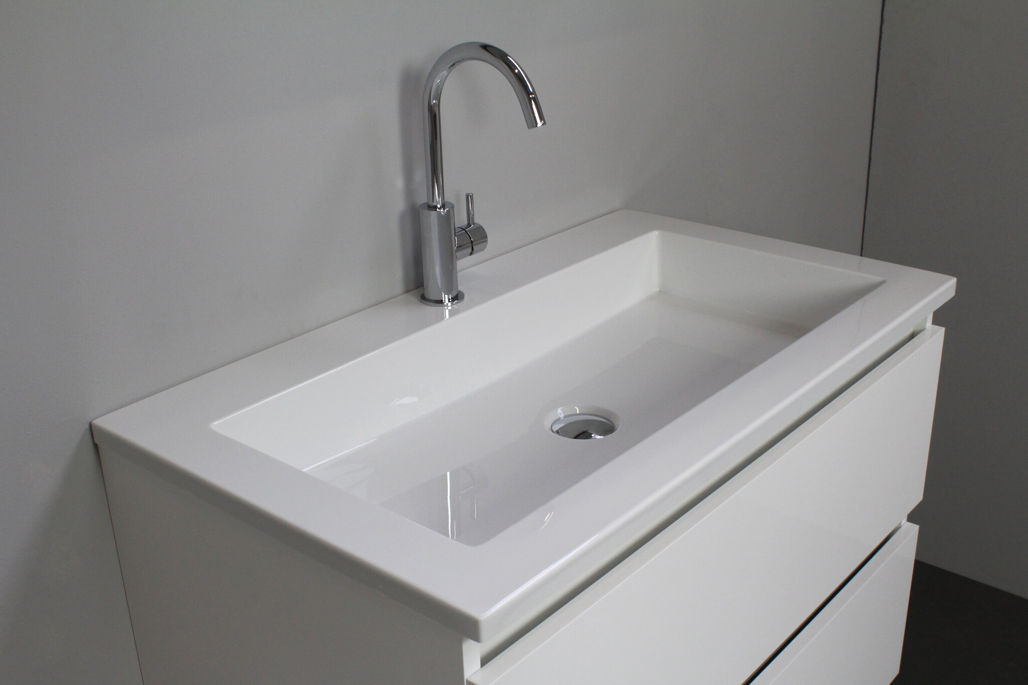 Solidline badkamermeubelset | 80cm | Acryl | Wit | 1 | Hoogglans wit | Spiegel met LED verlichting | Geassembleerd