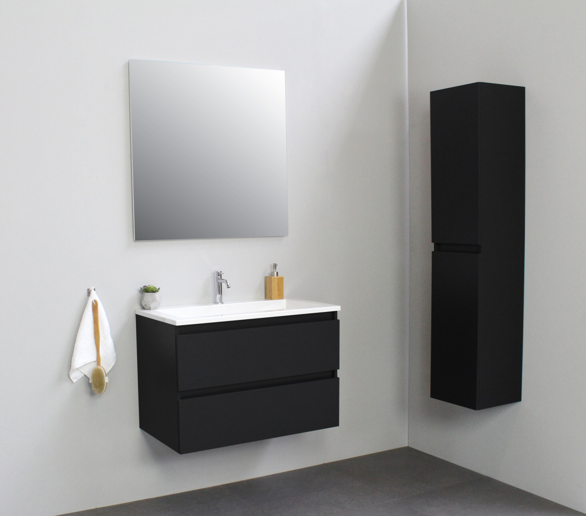 Solidline badkamermeubelset | 80cm | Acryl | Wit | 1 | Mat zwart | Zonder spiegel | Geassembleerd