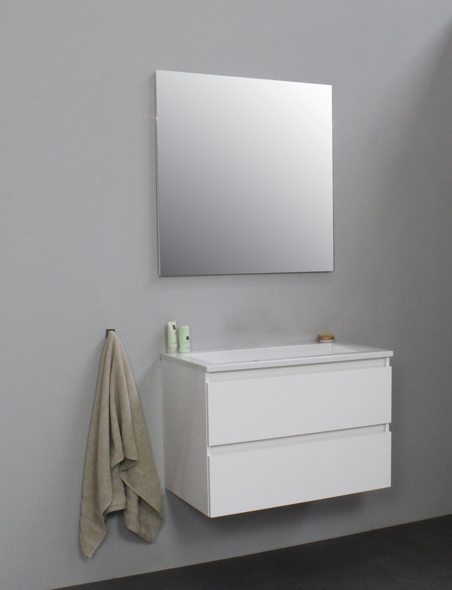 Solidline badkamermeubelset - 80cm - Acryl - Wit - 2 - Hoogglans wit - Standaard spiegel - Geassembleerd