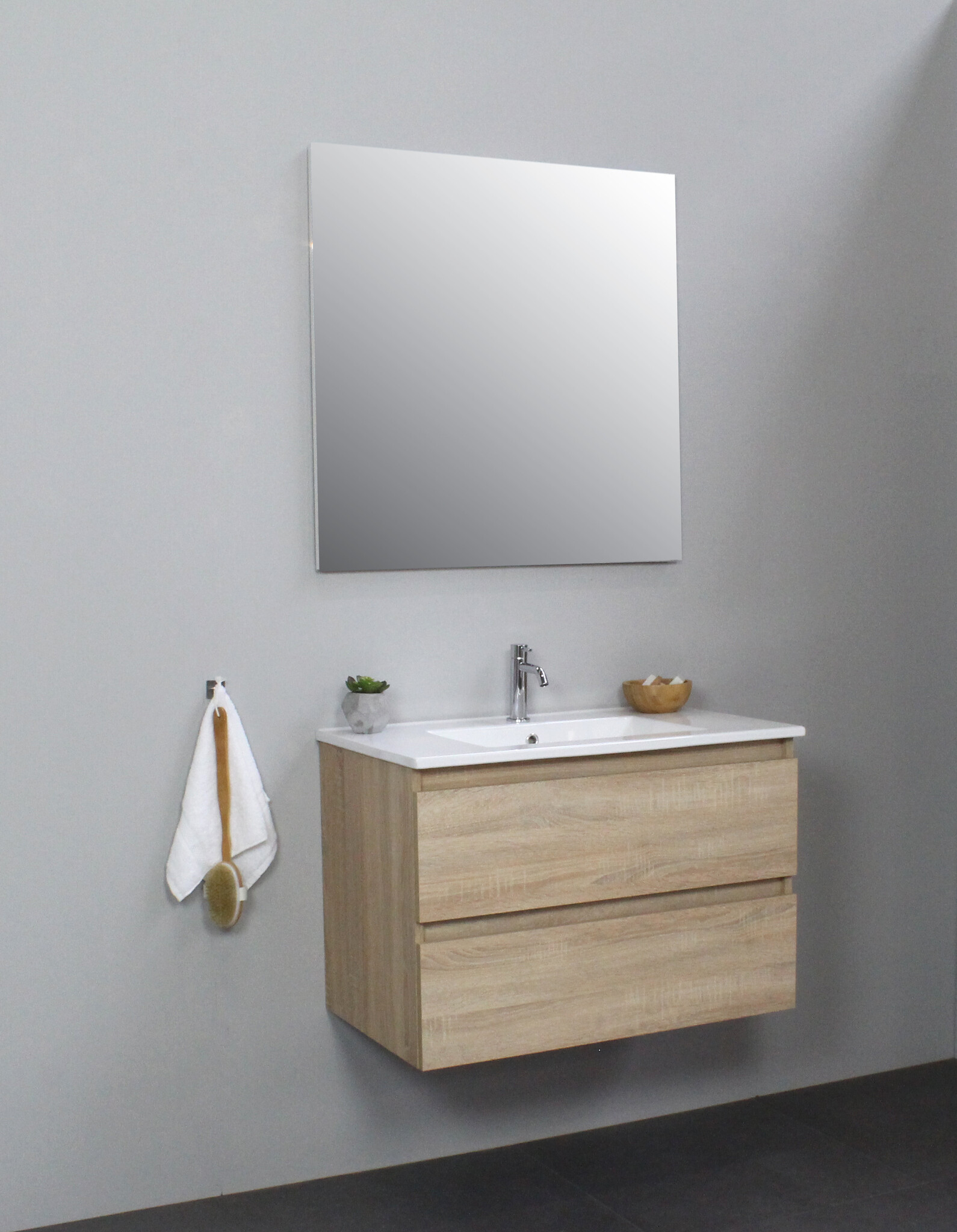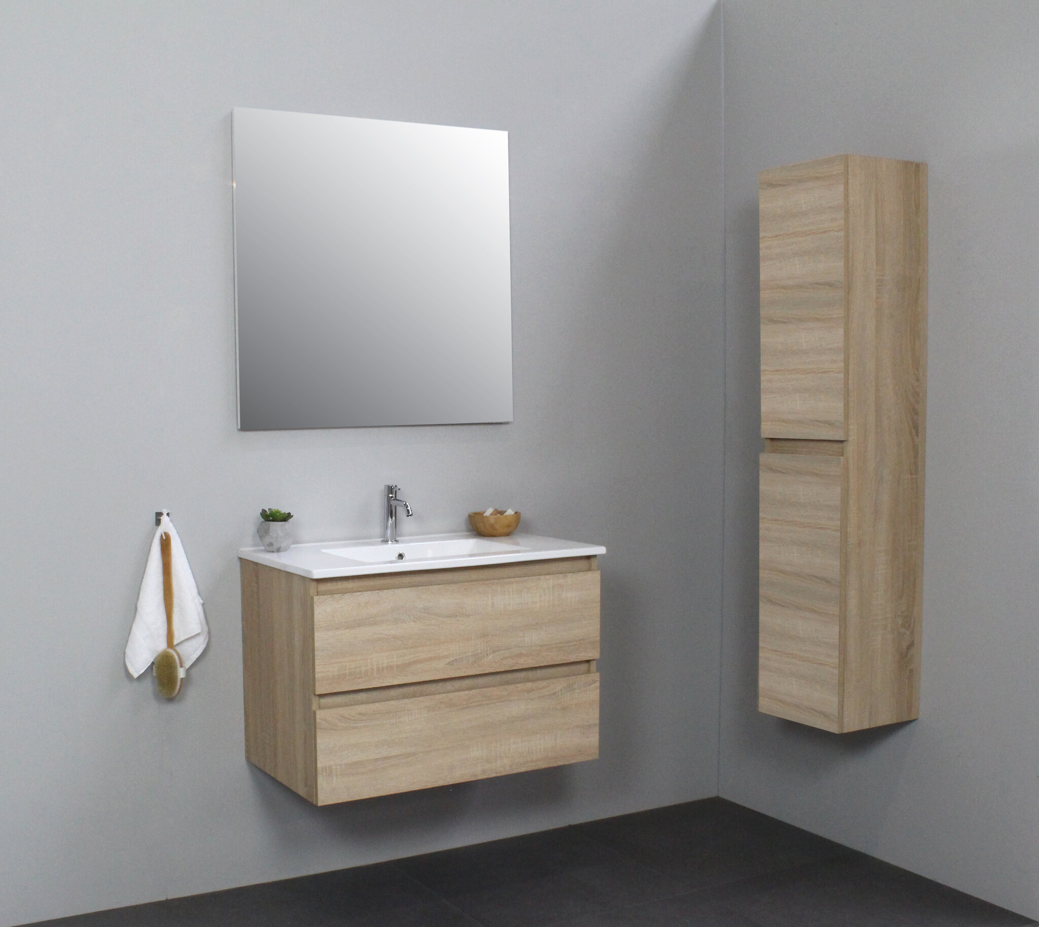 Solidline badkamermeubelset | 80cm | Keramiek | Wit | 1 | Eiken | Standaard spiegel | Bouwpakket