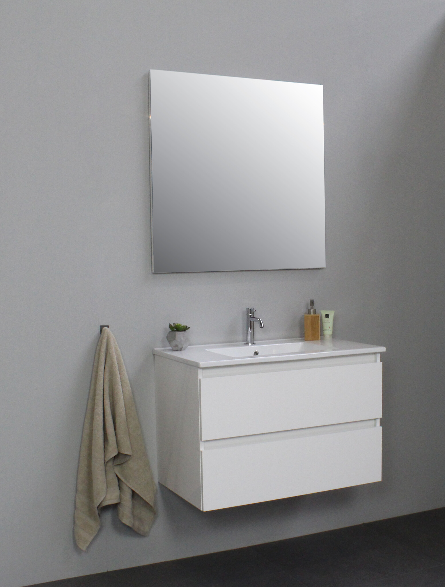 Solidline badkamermeubelset | 80cm | Keramiek | Wit | 1 | Hoogglans wit | Standaard spiegel | Bouwpakket