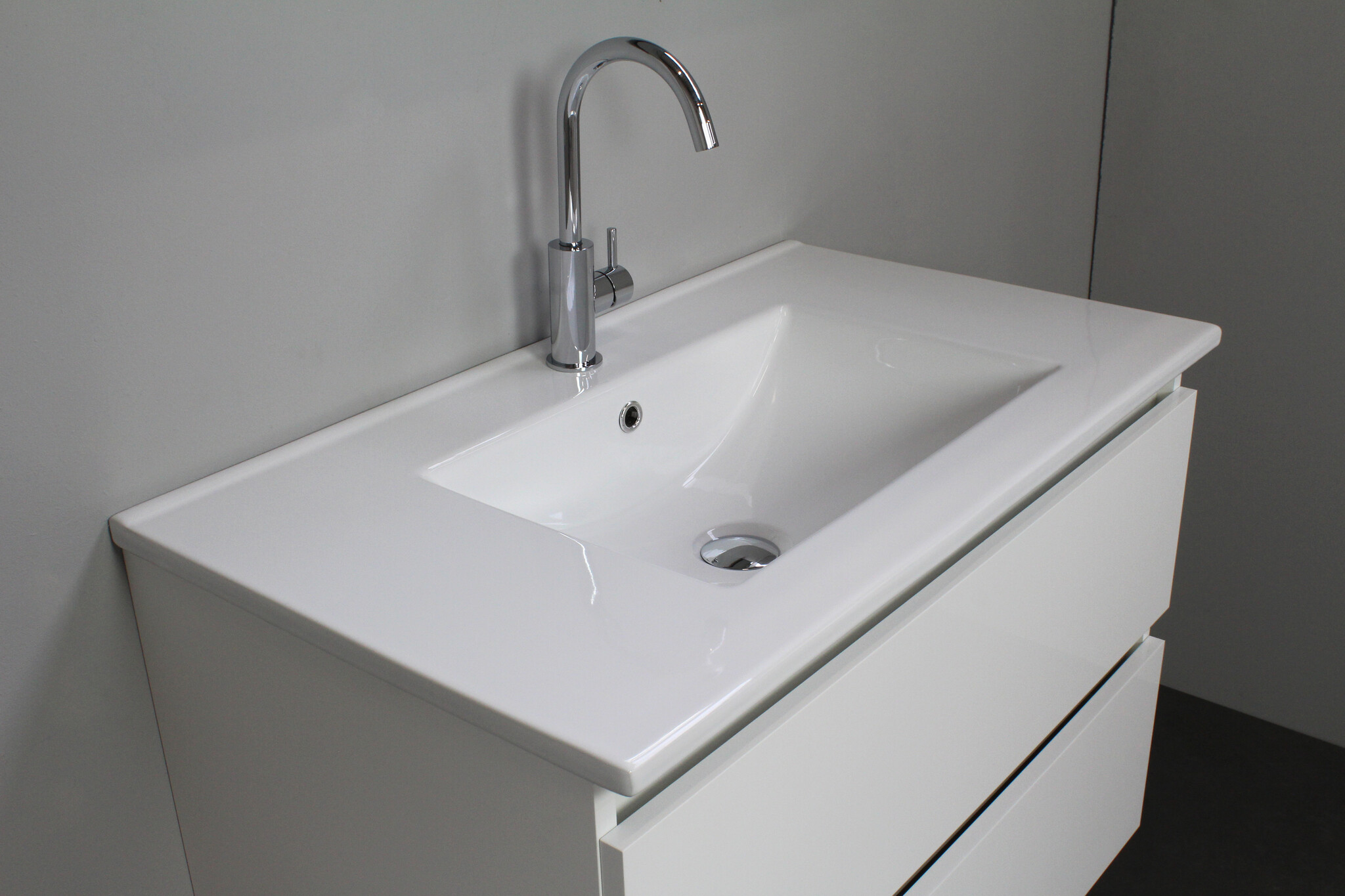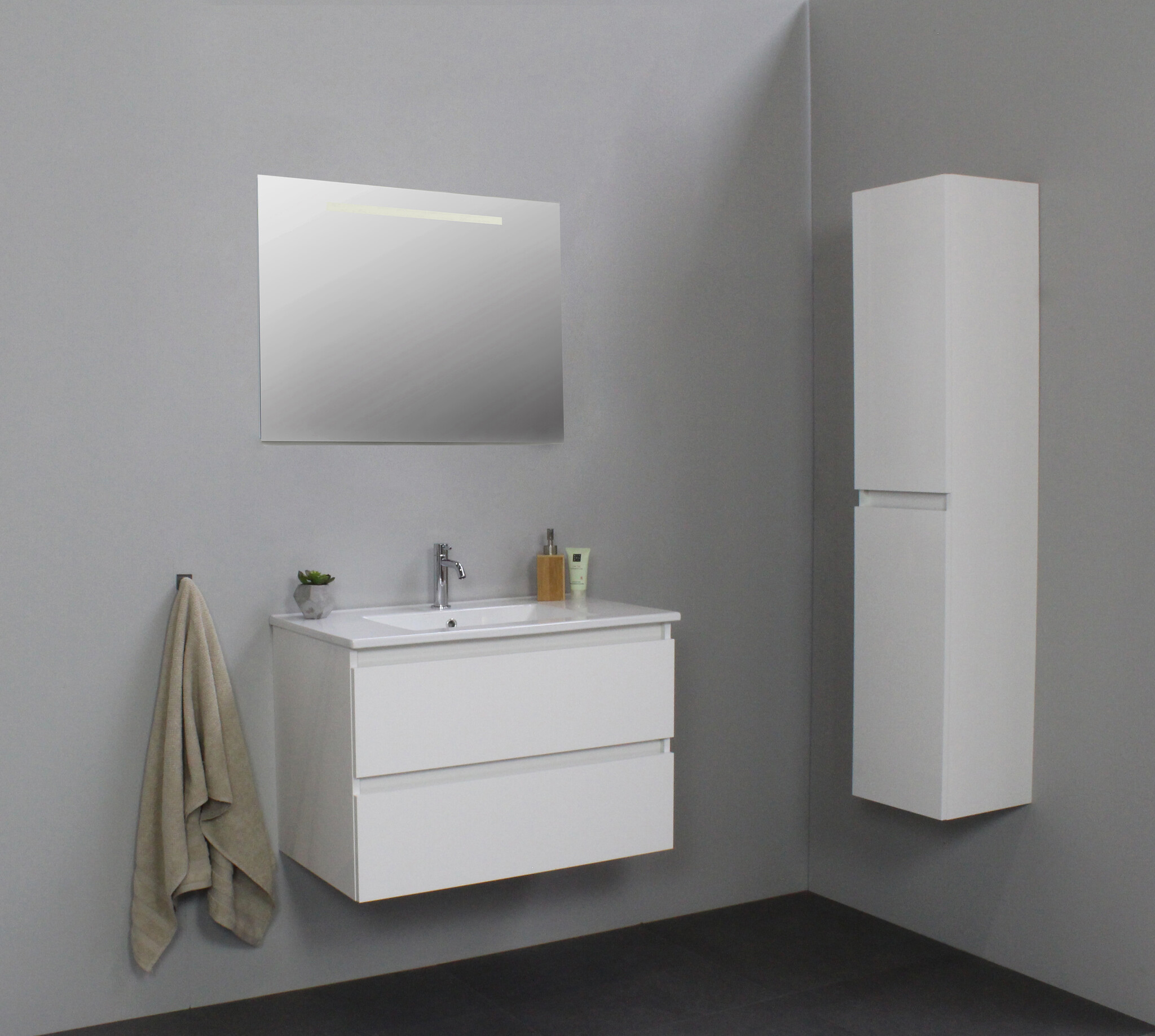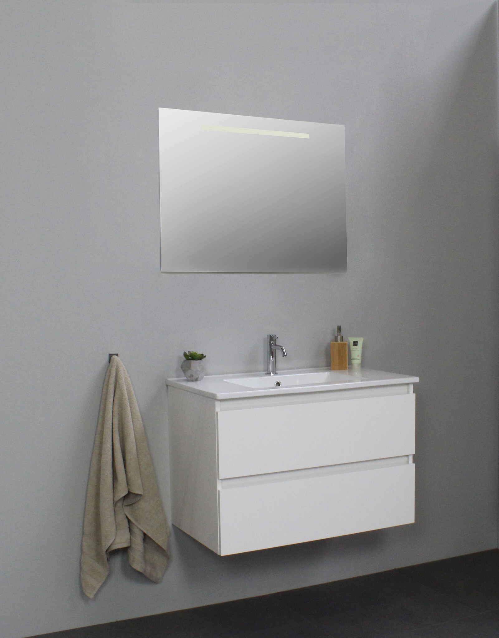 Solidline badkamermeubelset | 80cm | Keramiek | Wit | 1 | Hoogglans wit | Spiegel met LED verlichting | Bouwpakket