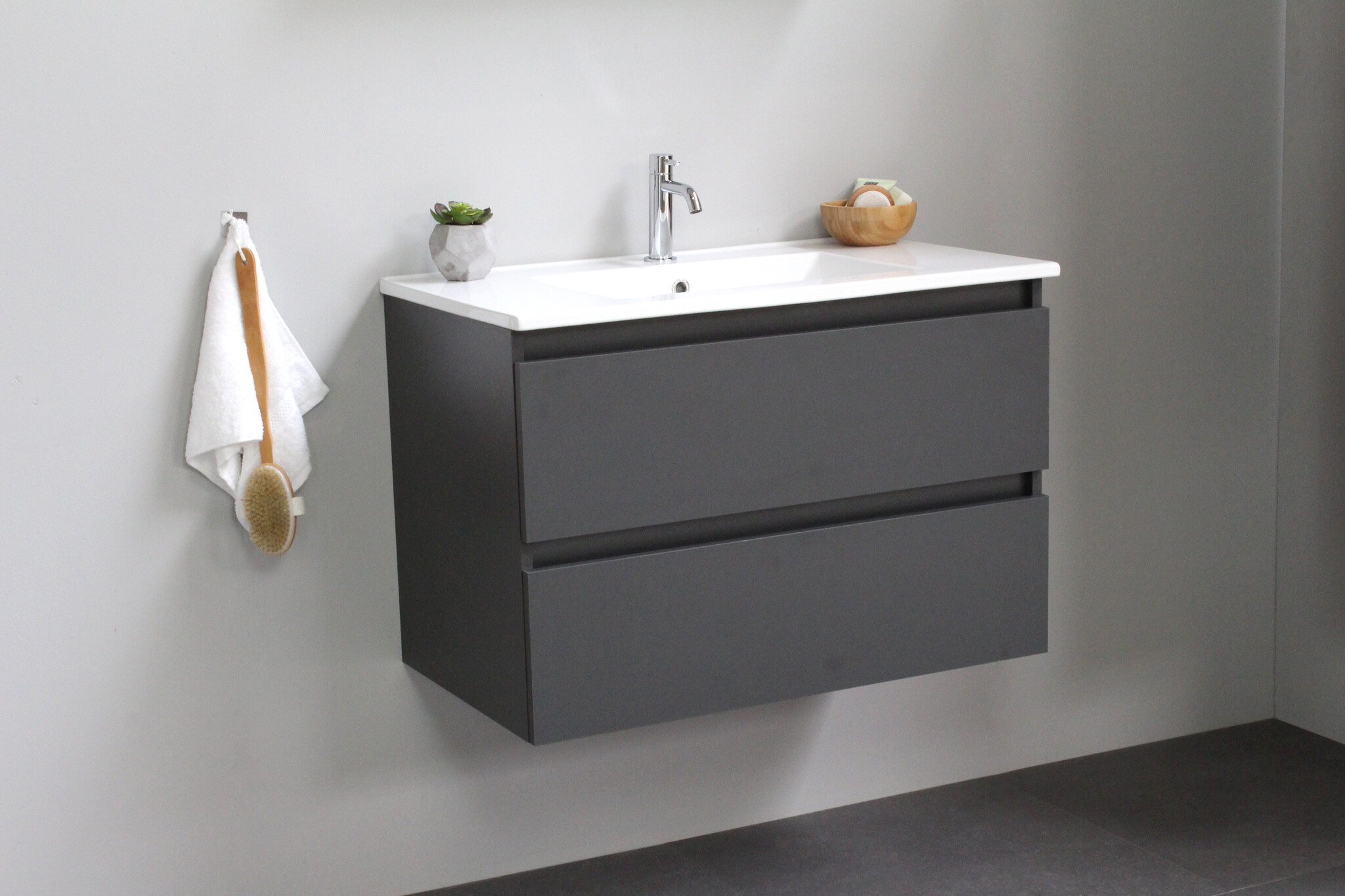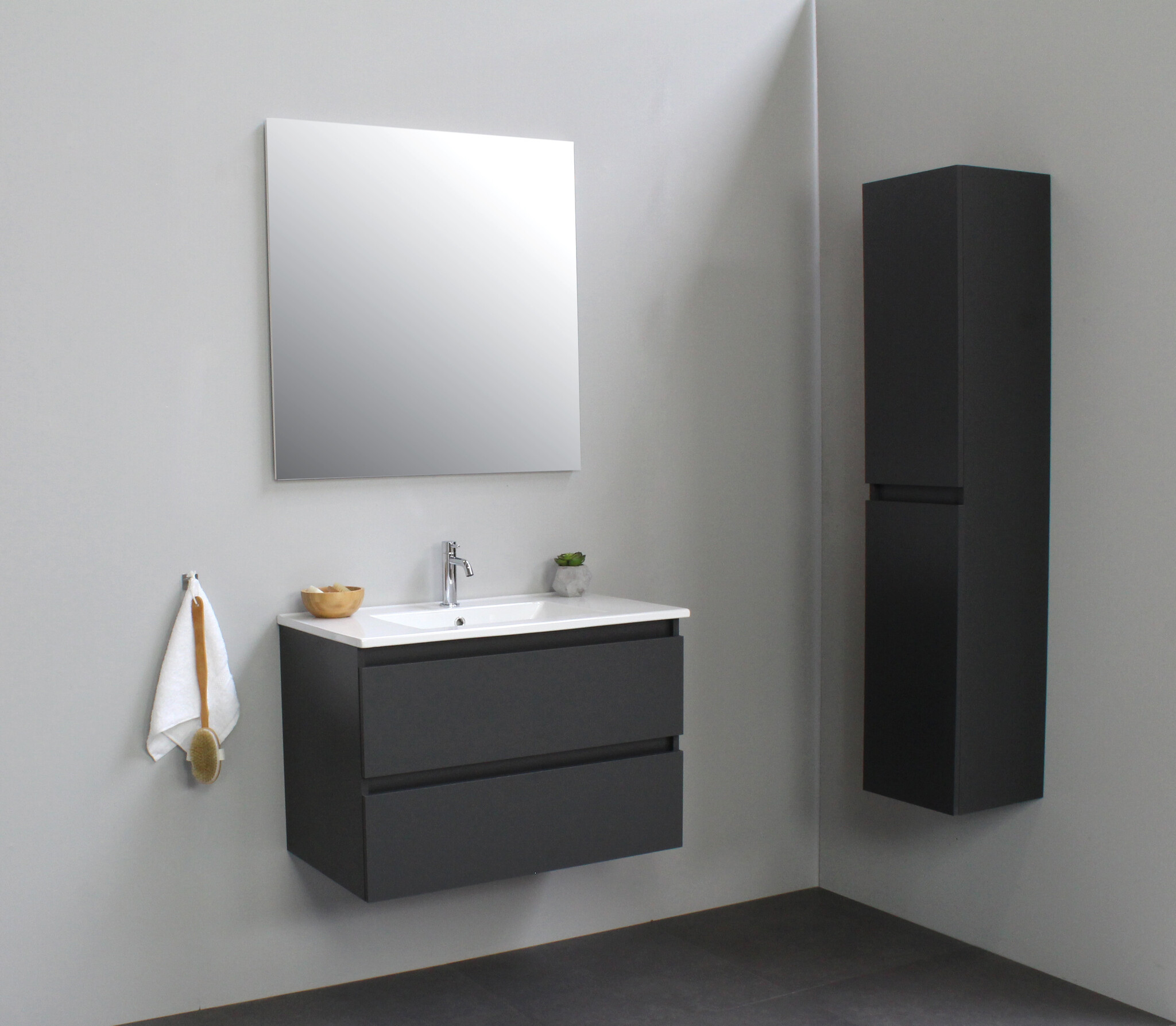 Solidline badkamermeubelset | 80cm | Keramiek | Wit | 1 | Mat antraciet | Zonder spiegel | Bouwpakket