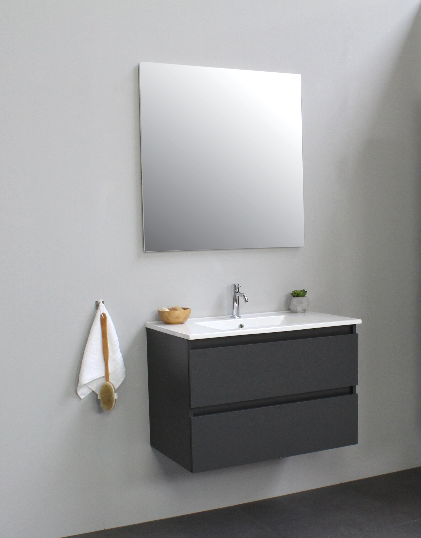 Solidline badkamermeubelset | 80cm | Keramiek | Wit | 1 | Mat antraciet | Standaard spiegel | Bouwpakket