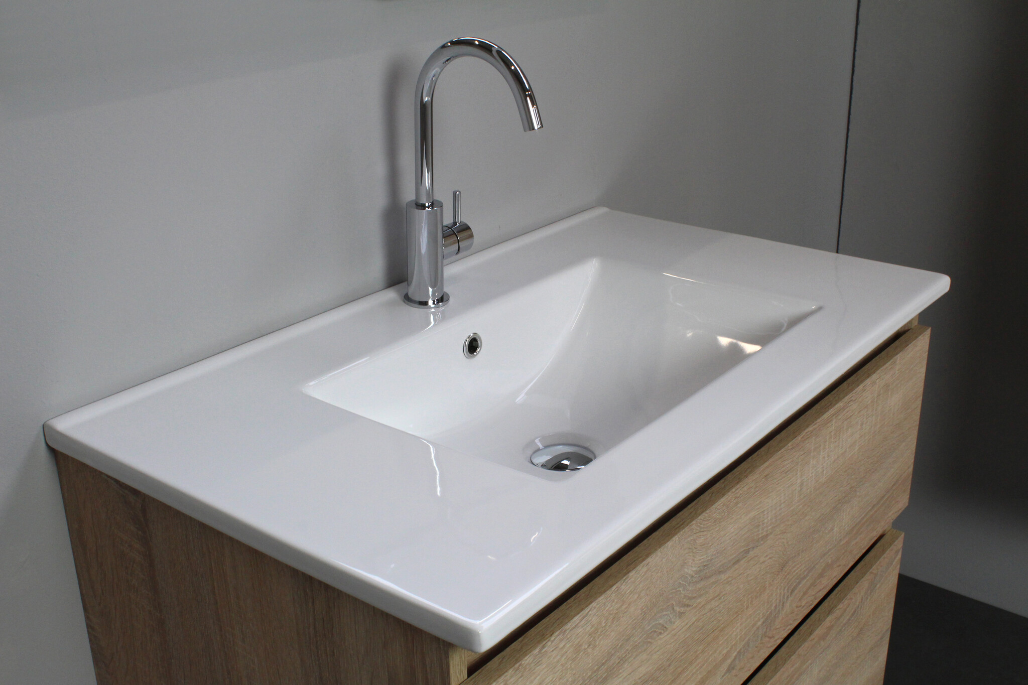 Solidline badkamermeubelset | 80cm | Keramiek | Wit | 1 | Eiken | Standaard spiegel | Geassembleerd