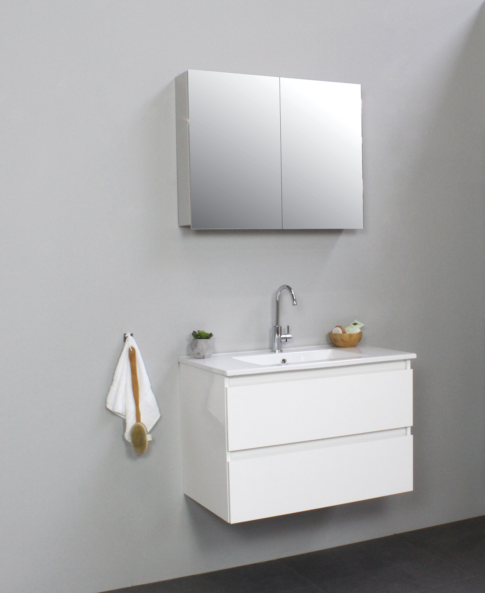 Offerte aanvraag voor Solidline badkamermeubelset | 80cm | Keramiek | Wit | 1 | Hoogglans wit | Met spiegelkast | Geassembleerd