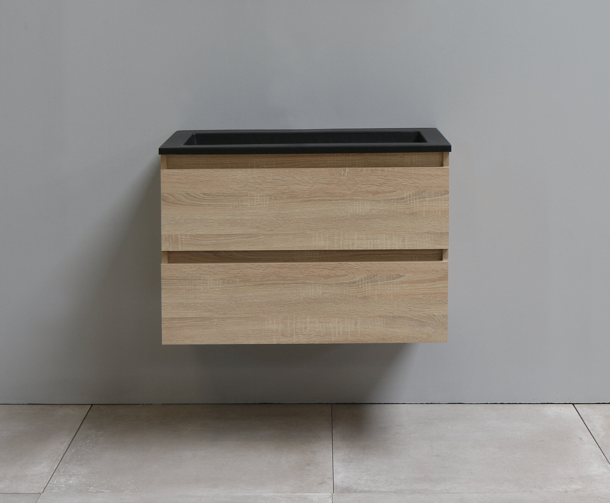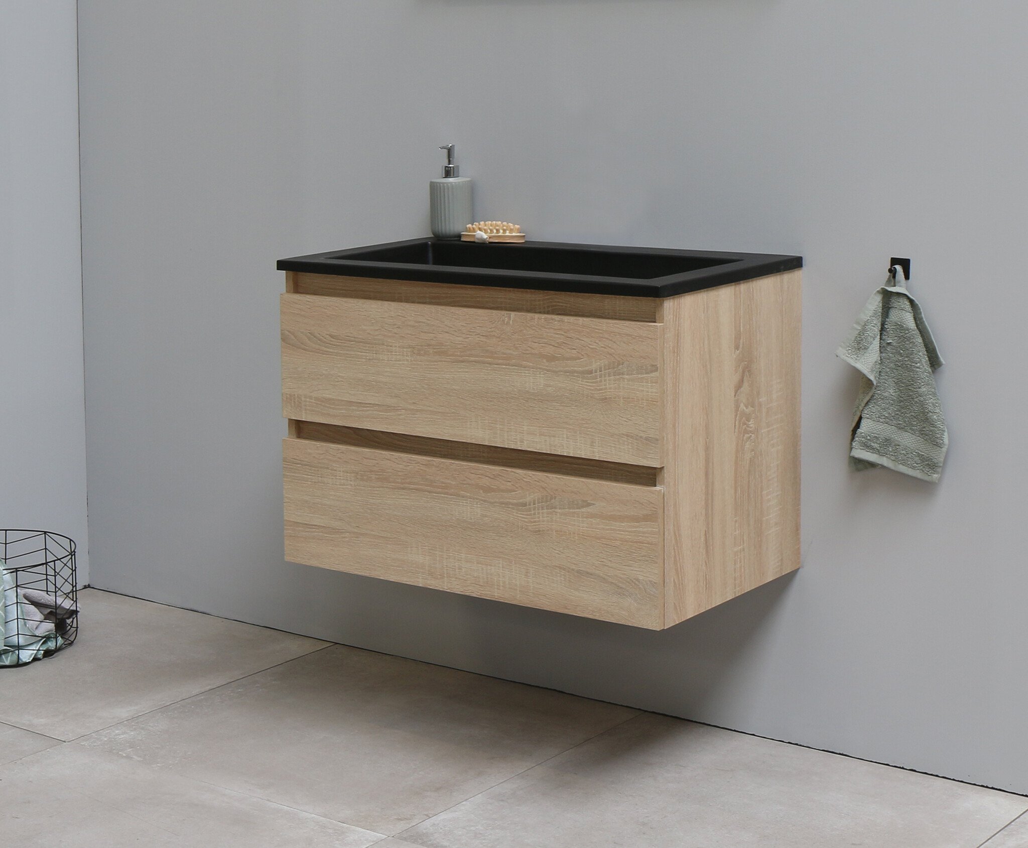 Solidline badkamermeubelset | 80cm | Keramiek | Mat zwart | 0 | Eiken | Zonder spiegel | Geassembleerd