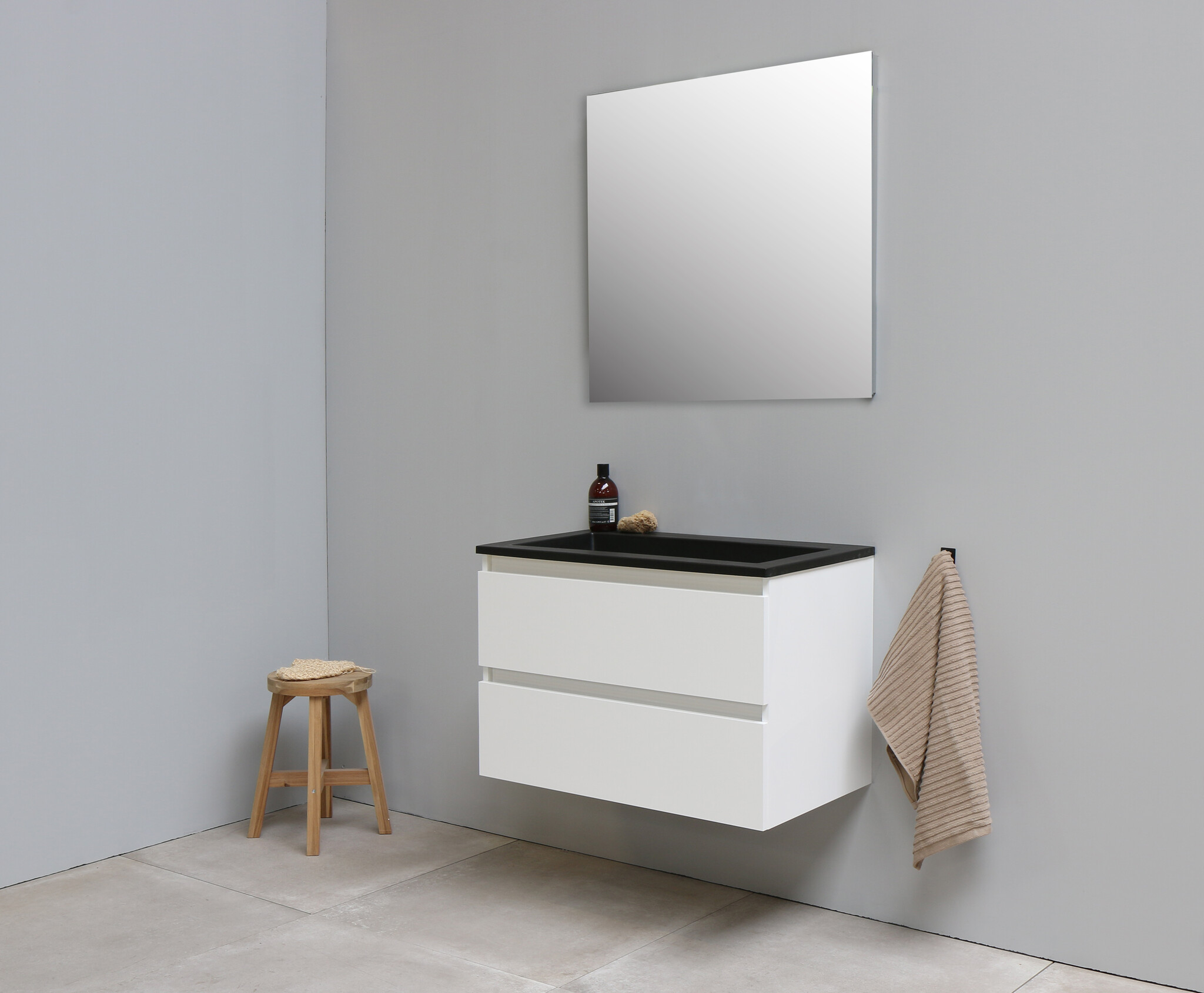Offerte aanvraag voor Solidline badkamermeubelset | 80cm | Keramiek | Mat zwart | 1 | Hoogglans wit | Standaard spiegel | Geassembleerd