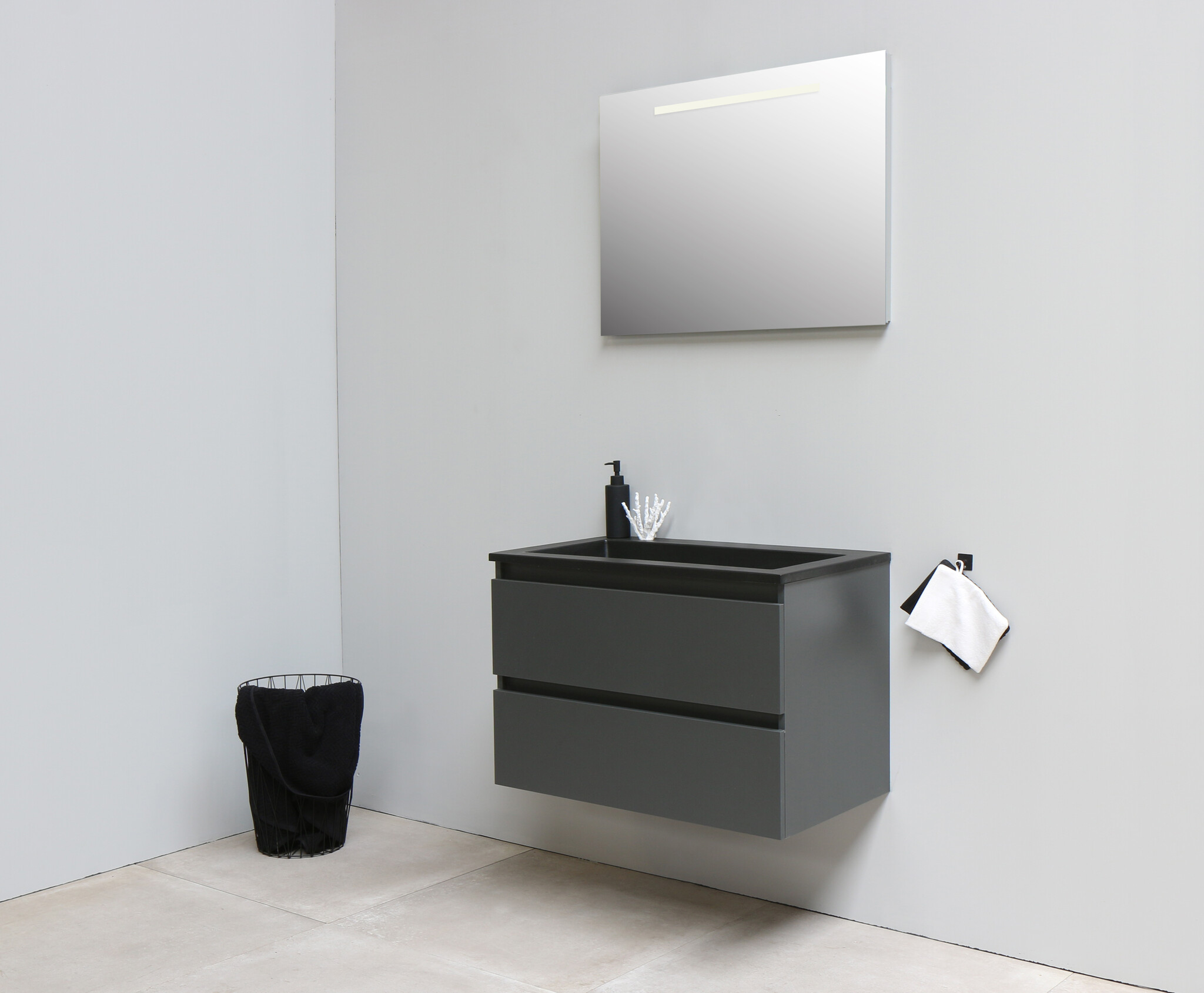 Solidline badkamermeubelset | 80cm | Keramiek | Mat zwart | 2 | Mat antraciet | Spiegel met LED verlichting | Bouwpakket