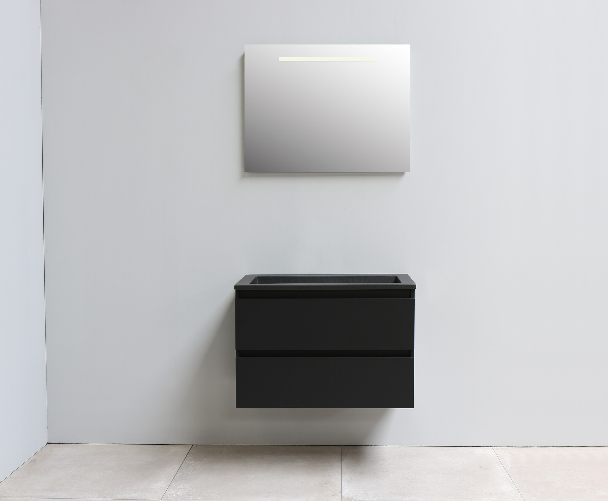 Solidline badkamermeubelset | 80cm | Keramiek | Mat zwart | 2 | Mat zwart | Spiegel met LED verlichting | Bouwpakket