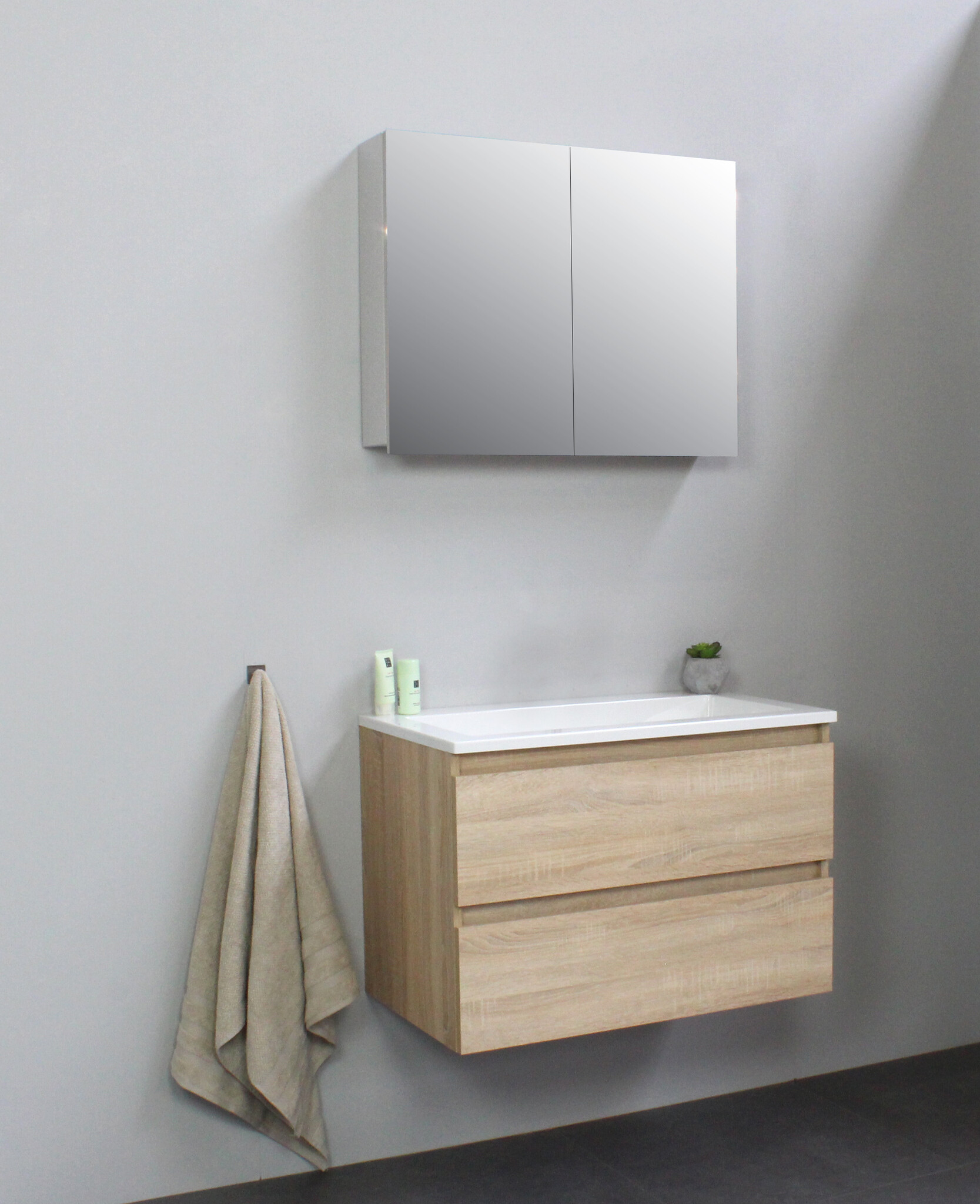 Solidline badkamermeubelset | 80cm | Keramiek | Wit | 0 | Eiken | Met spiegelkast | Bouwpakket