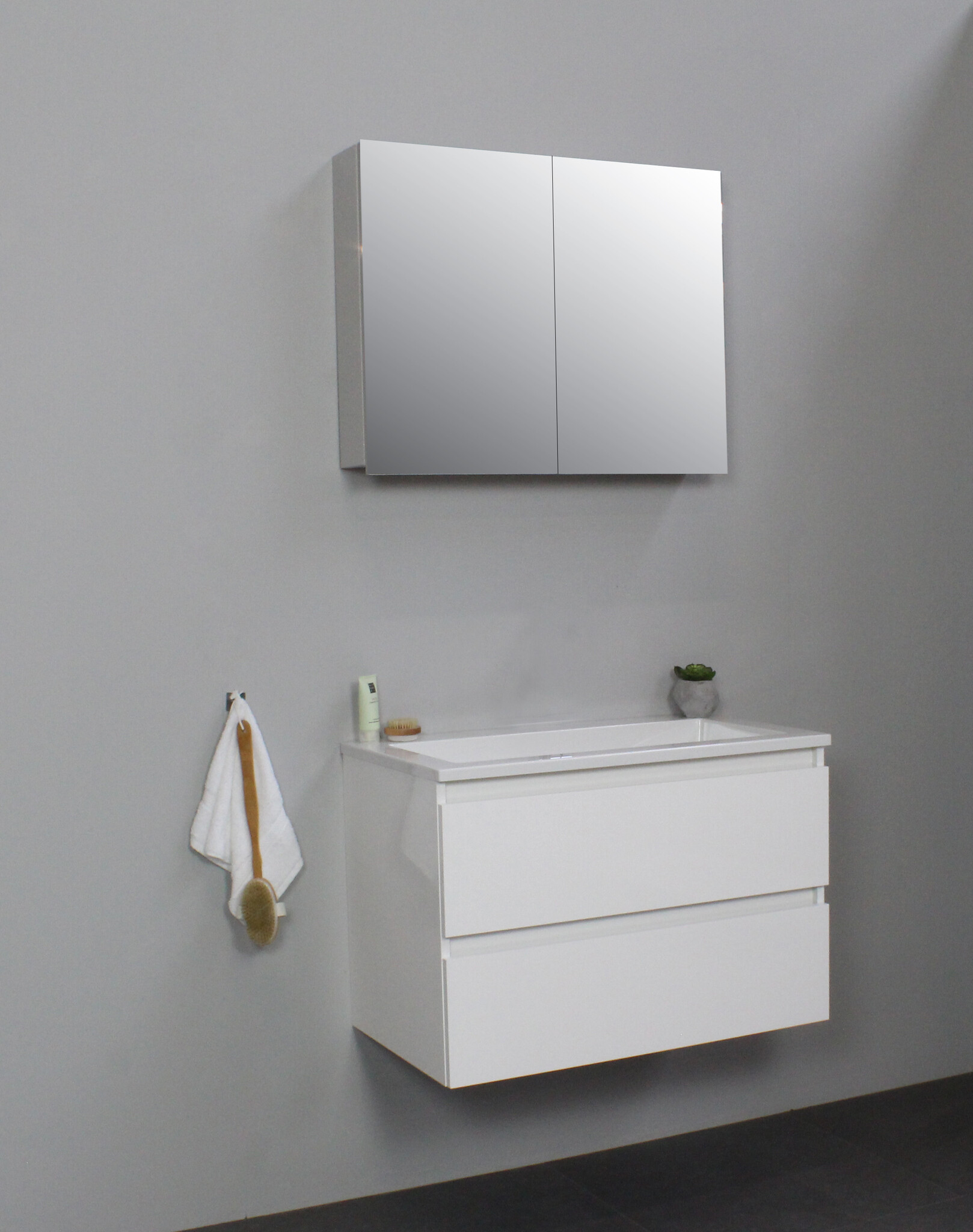 Offerte aanvraag voor Solidline badkamermeubelset | 80cm | Keramiek | Wit | 0 | Hoogglans wit | Met spiegelkast | Geassembleerd