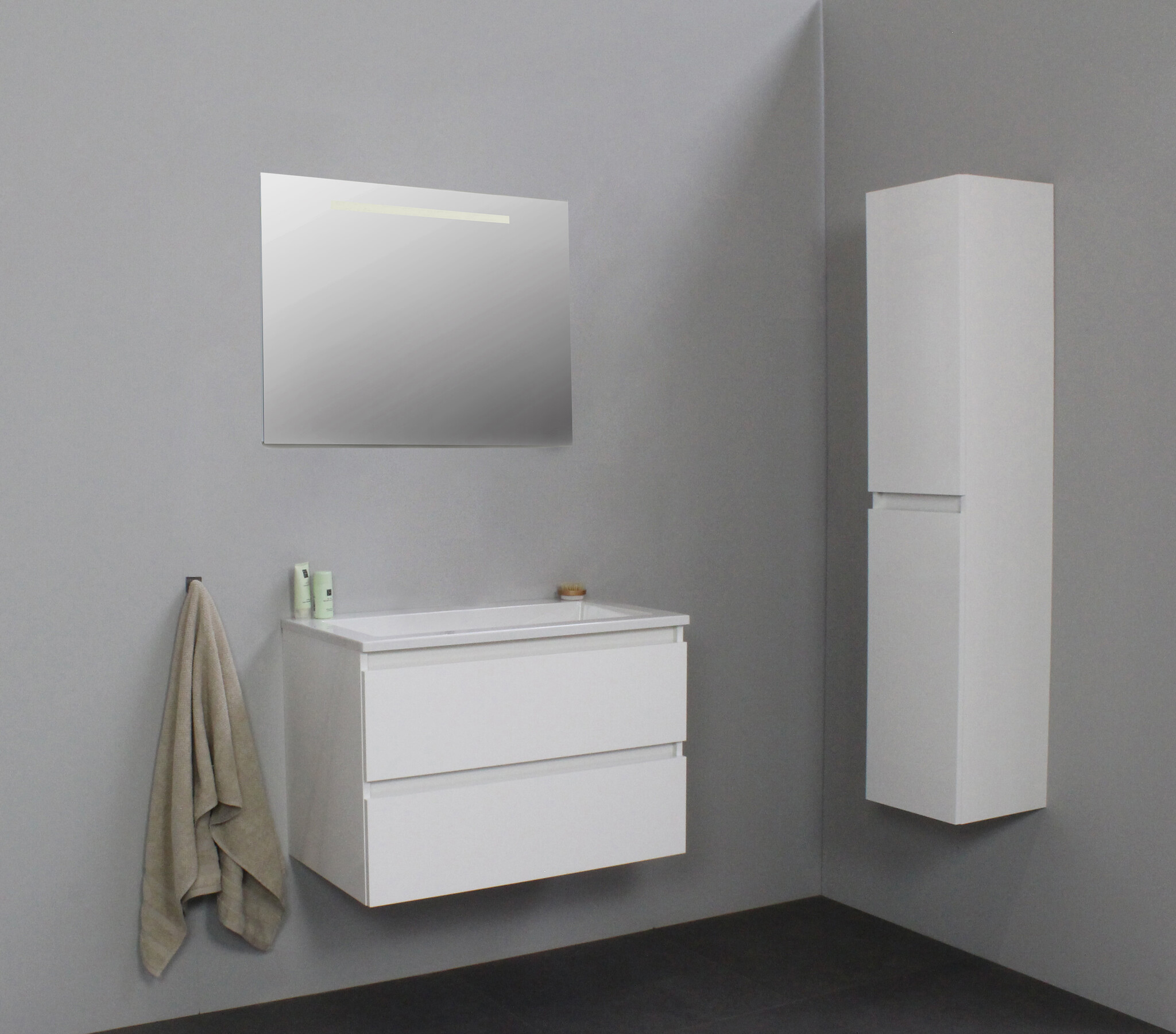 Solidline badkamermeubelset | 80cm | Keramiek | Wit | 0 | Hoogglans wit | Spiegel met LED verlichting | Bouwpakket