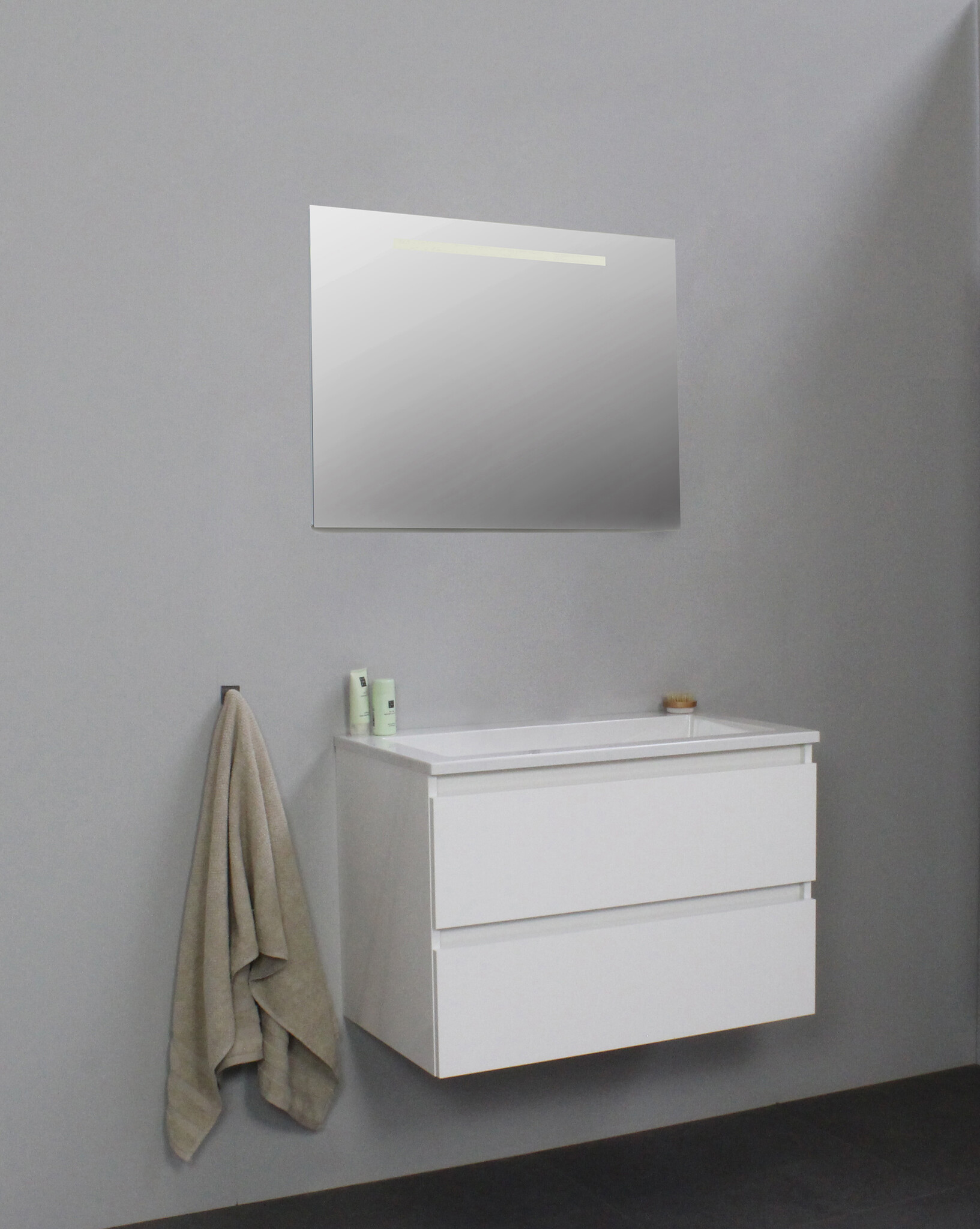Offerte aanvraag voor Solidline badkamermeubelset | 80cm | Keramiek | Wit | 0 | Hoogglans wit | Spiegel met LED verlichting | Geassembleerd