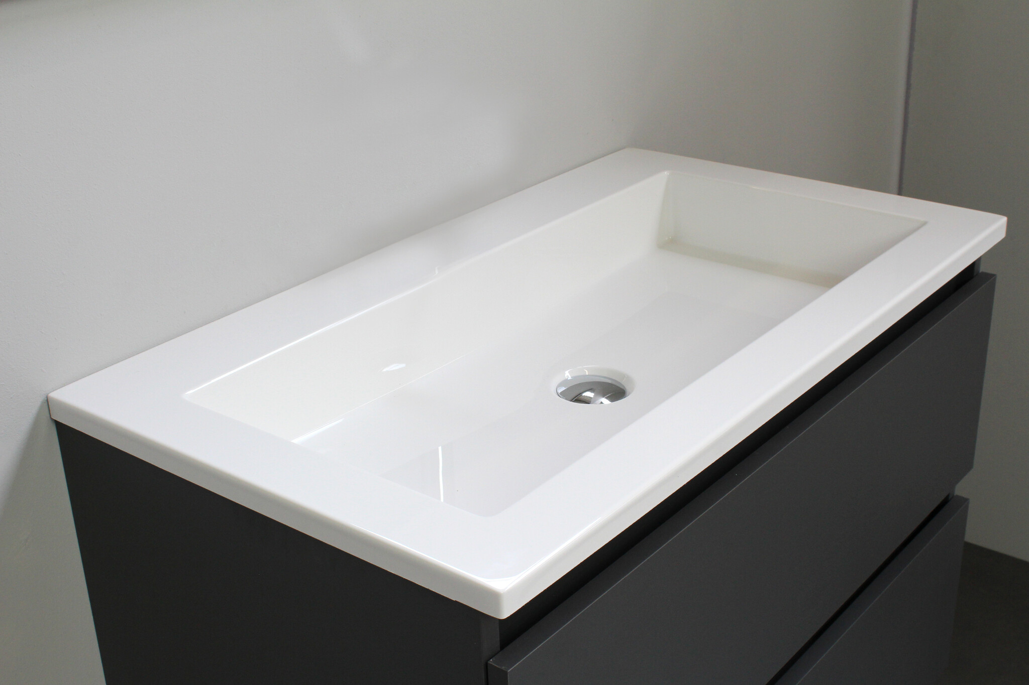 Solidline badkamermeubelset | 80cm | Keramiek | Wit | 0 | Mat antraciet | Met spiegelkast | Geassembleerd