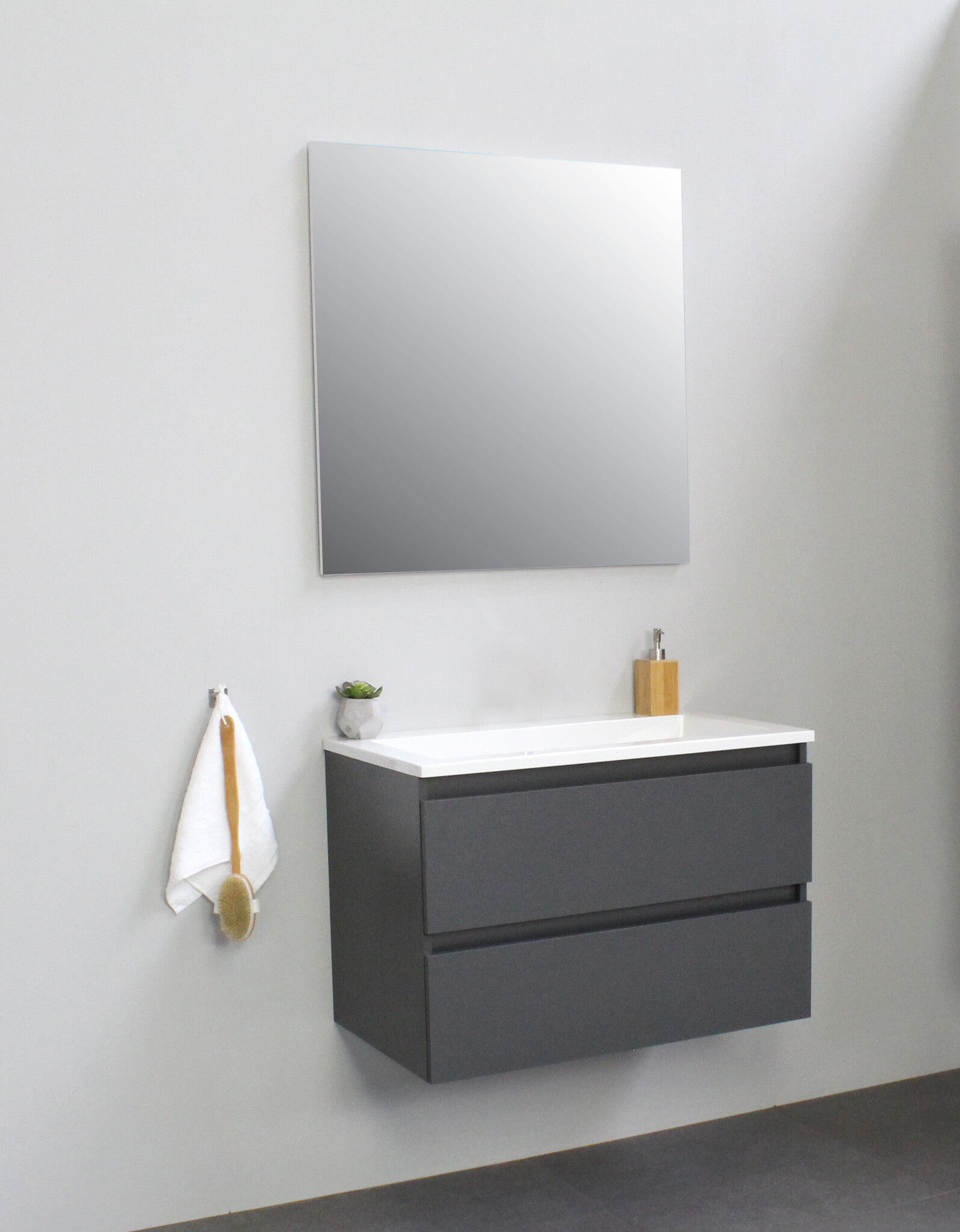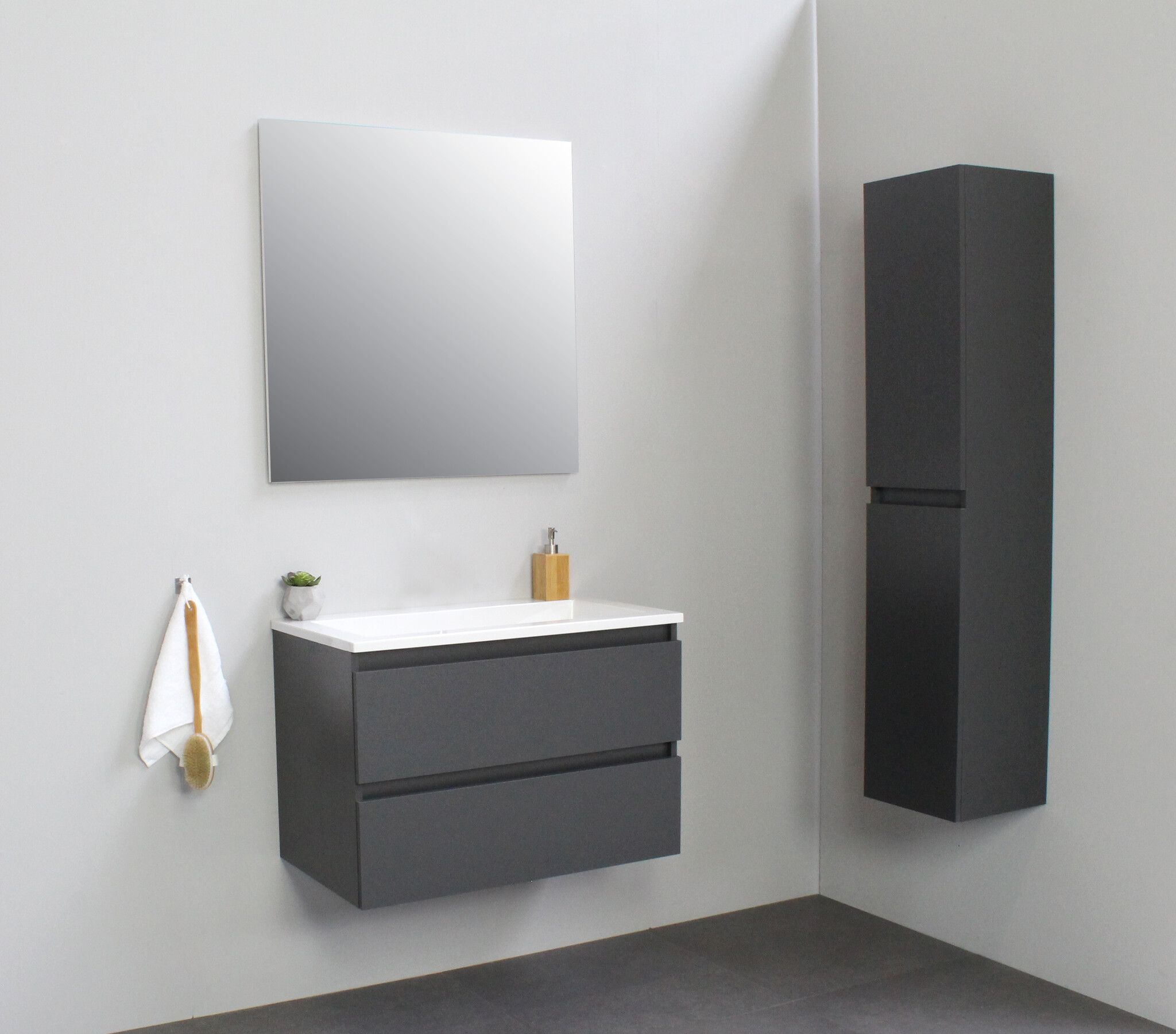 Solidline badkamermeubelset | 80cm | Keramiek | Wit | 0 | Mat antraciet | Standaard spiegel | Geassembleerd