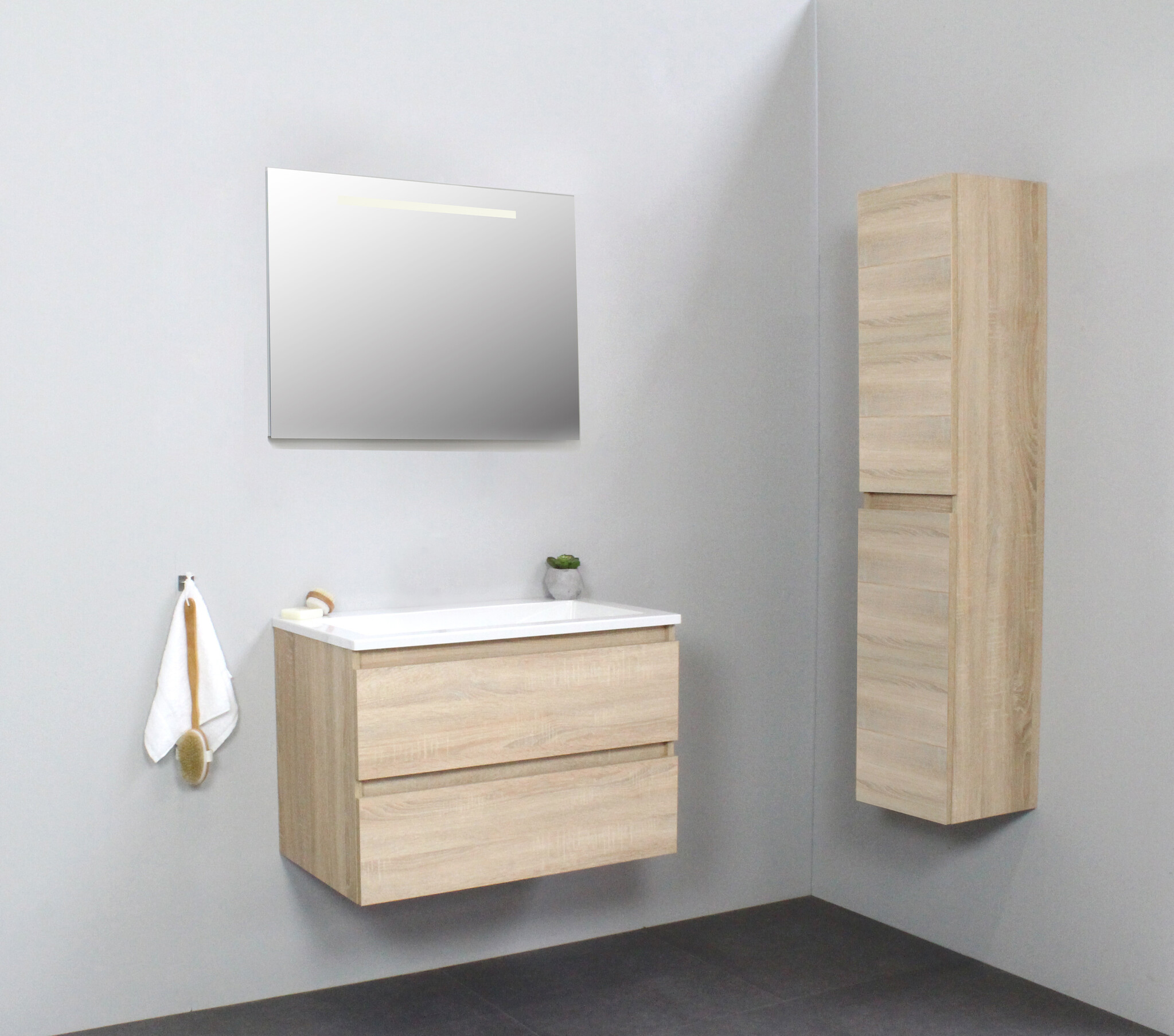 Solidline badkamermeubelset | 80cm | Keramiek | Wit | 2 | Eiken | Spiegel met LED verlichting | Bouwpakket