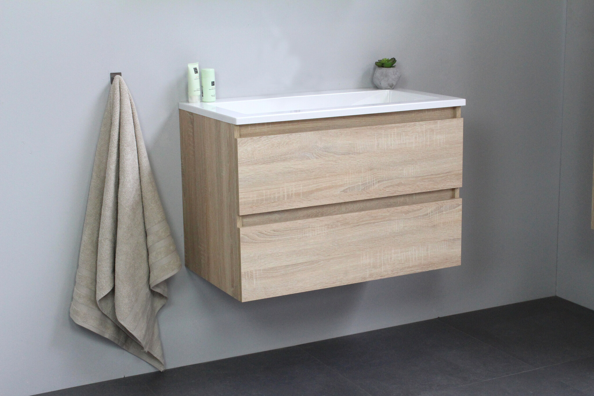 Offerte aanvraag voor Solidline badkamermeubelset | 80cm | Keramiek | Wit | 2 | Eiken | Zonder spiegel | Bouwpakket