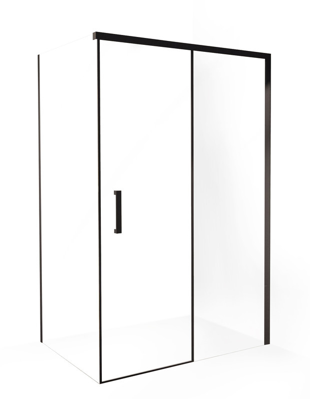 Solidline Soft Close zijwand 80*200 cm - Mat zwart - Helder glas - 8 mm - Mat zwart - Helder glas - 8 mm