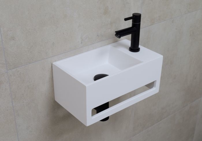 Solidline solid surface fontein set met Zwarte kraan 36x20cm rechts