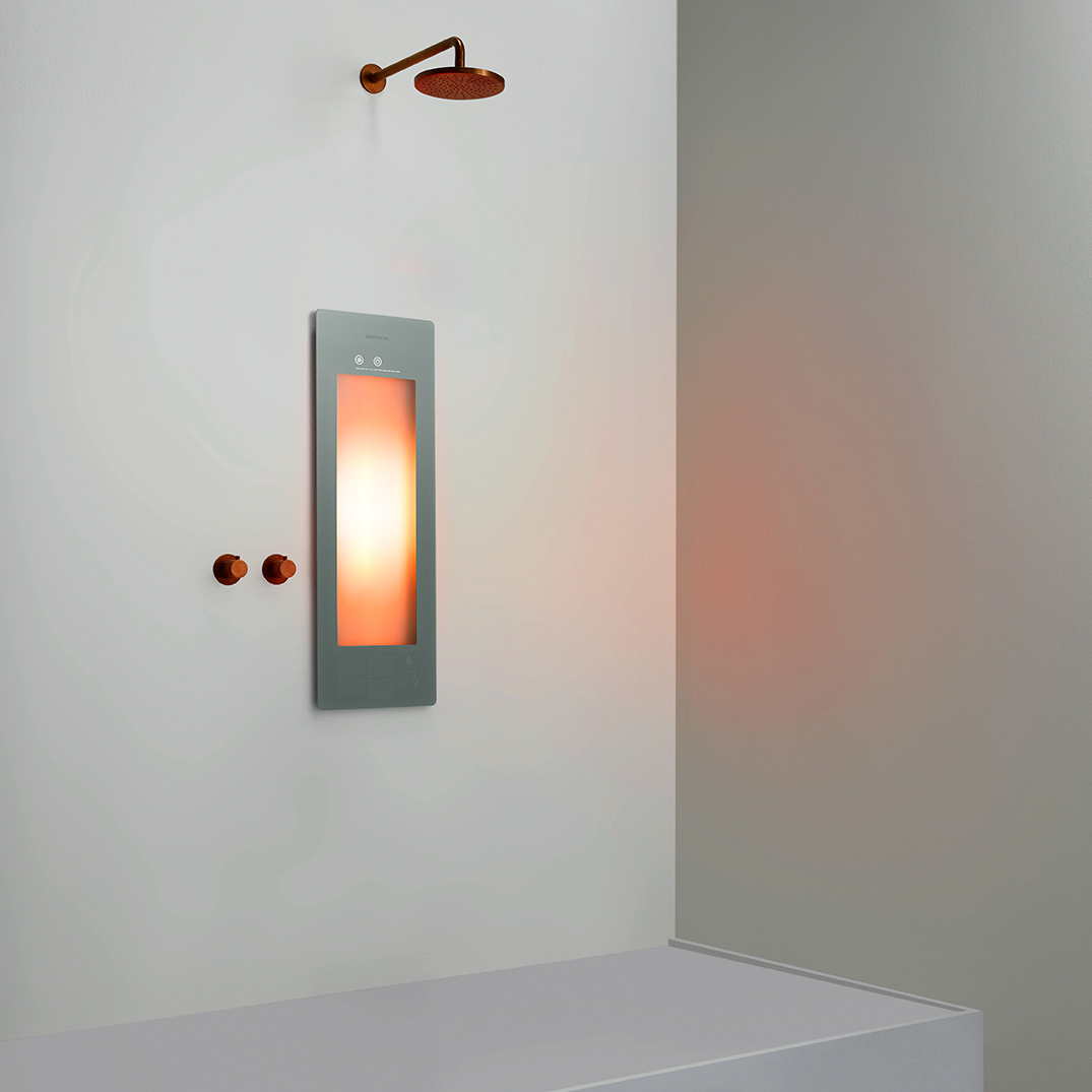 Met één druk op het touchscreen start de sessie. Na 10 minuten schakelt de Sunshower vanzelf uit. Voor een eenvoudige inbouw is de inbouwbox Small een handige toevoeging.