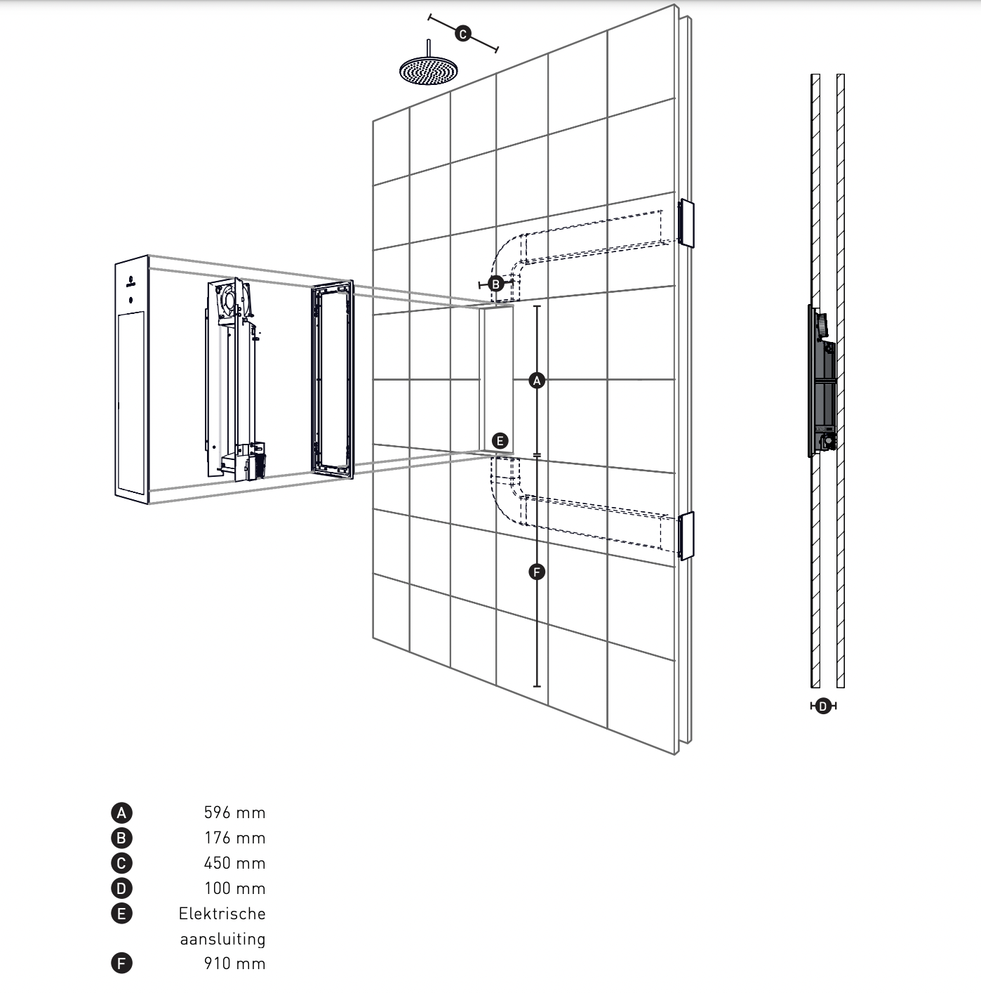 - Inbouwmontage zorgt voor een minimalistische en strakke uitstraling in de douchewand.