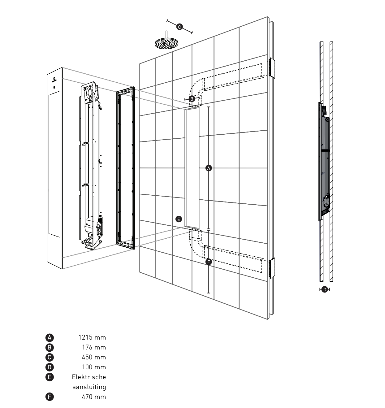 - Inbouwmontage zorgt voor een minimalistische en strakke uitstraling in de douchewand.