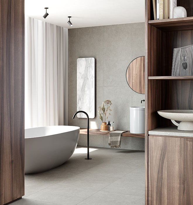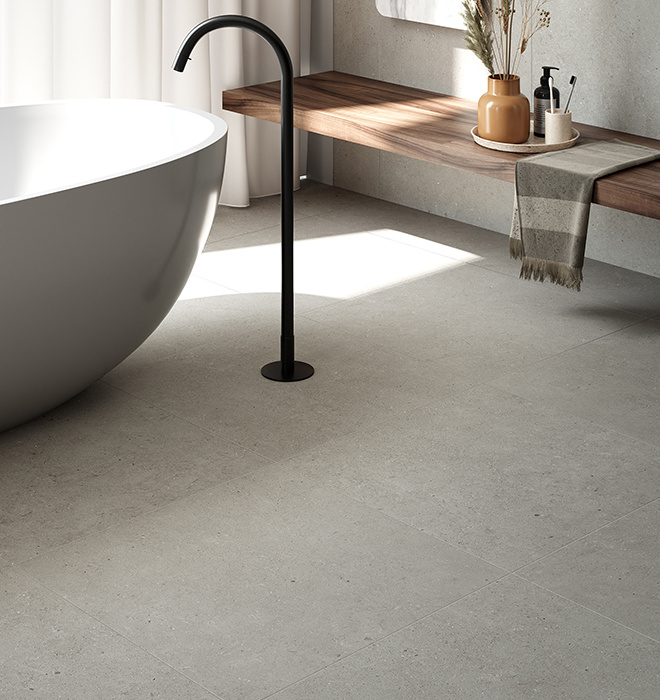 Transformeer je huis in een oase van luxe met de Terratinta Lagom smoke mat vloertegel 60x120cm. Of je nu een modern, klassiek of eigentijds interieur hebt, deze vloertegel voegt een vleugje verfijning toe aan elk decor en creëert een sfeer van ongeëvenaarde elegantie.